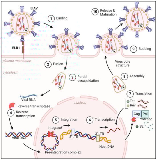 Chicago/Turabian StyleSchimmich, Cécile, Astrid Vabret, Stéphan Zientara, and José Carlos Valle-Casuso. 2025. "Equine Infectious Anemia Virus Cellular Partners Along the Viral Cycle" Viruses 17, no. 1: 5. https://doi.org/10.3390/v17010005