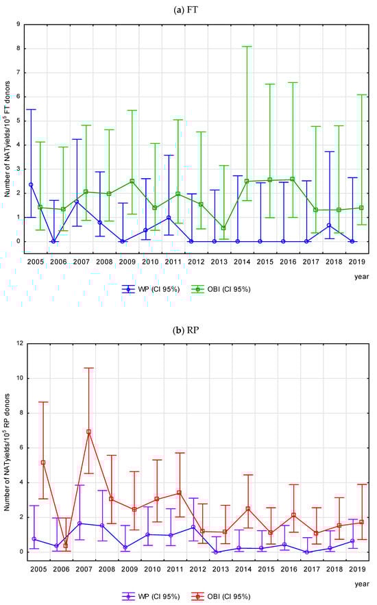 | 2005–2019 | Donors | Tested | NAT Yields (in Total WP and OBI) | Window Period (WP) | Occult HBV (OBI) | ||||||