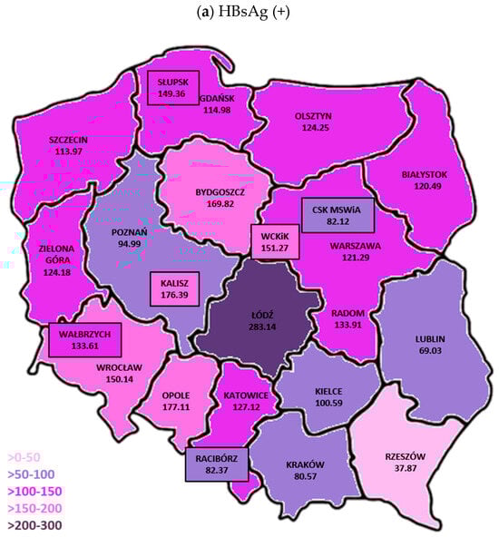 - Stepien, M.; Czarkowski, M.P. Hepatitis B in Poland in 2016. Przegl. Epidemiol. 2018, 72, 441–451. [Google Scholar] [CrossRef] [PubMed]