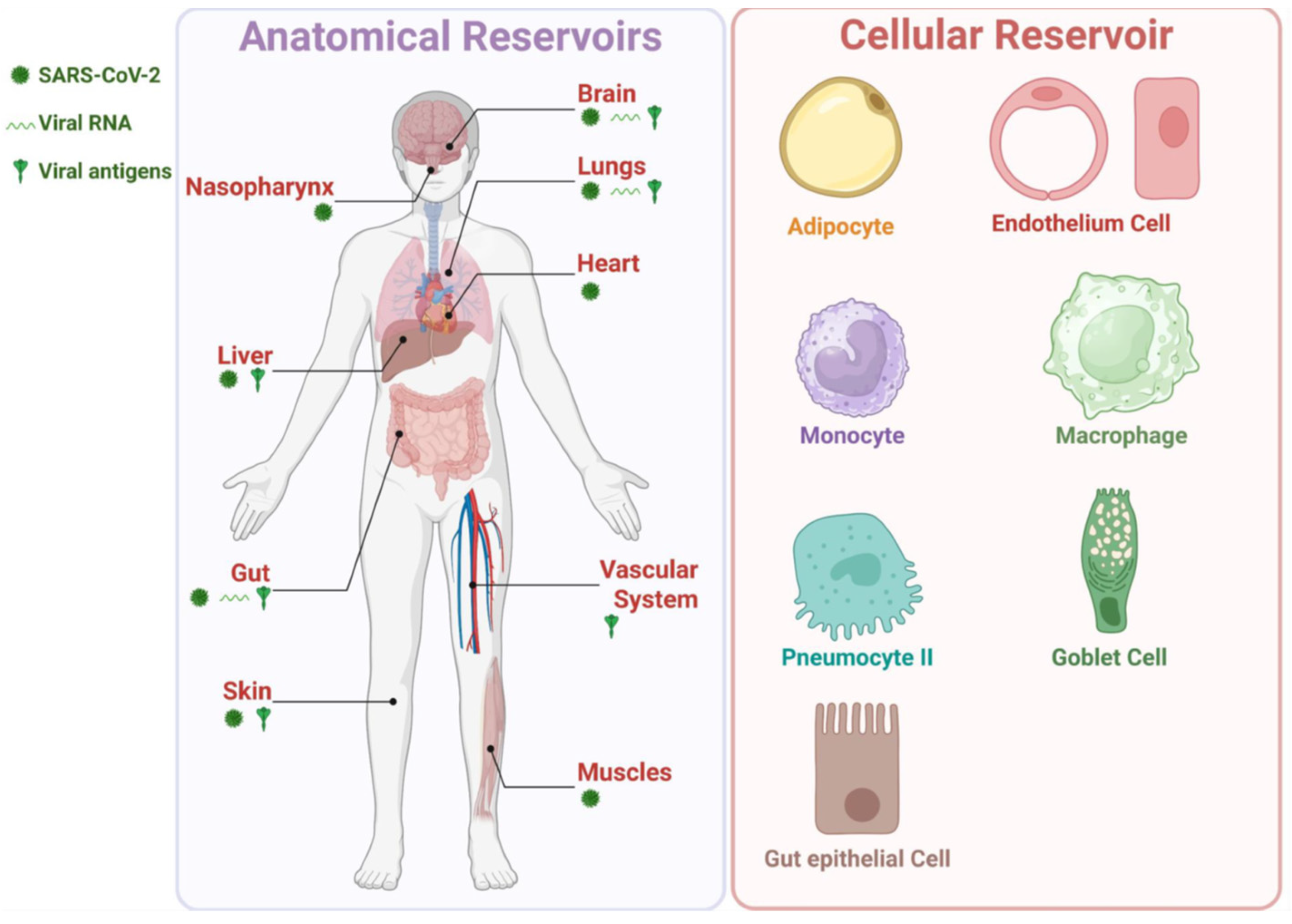 - While a growing body of literature has shown that persistent virus and vRNA reservoirs within cells from various body tissues correlate with some of the LC symptoms, it remains to be confirmed whether the various symptomatology of LC and pro-inflammatory signatures are a direct consequence of persistent viral antigens.