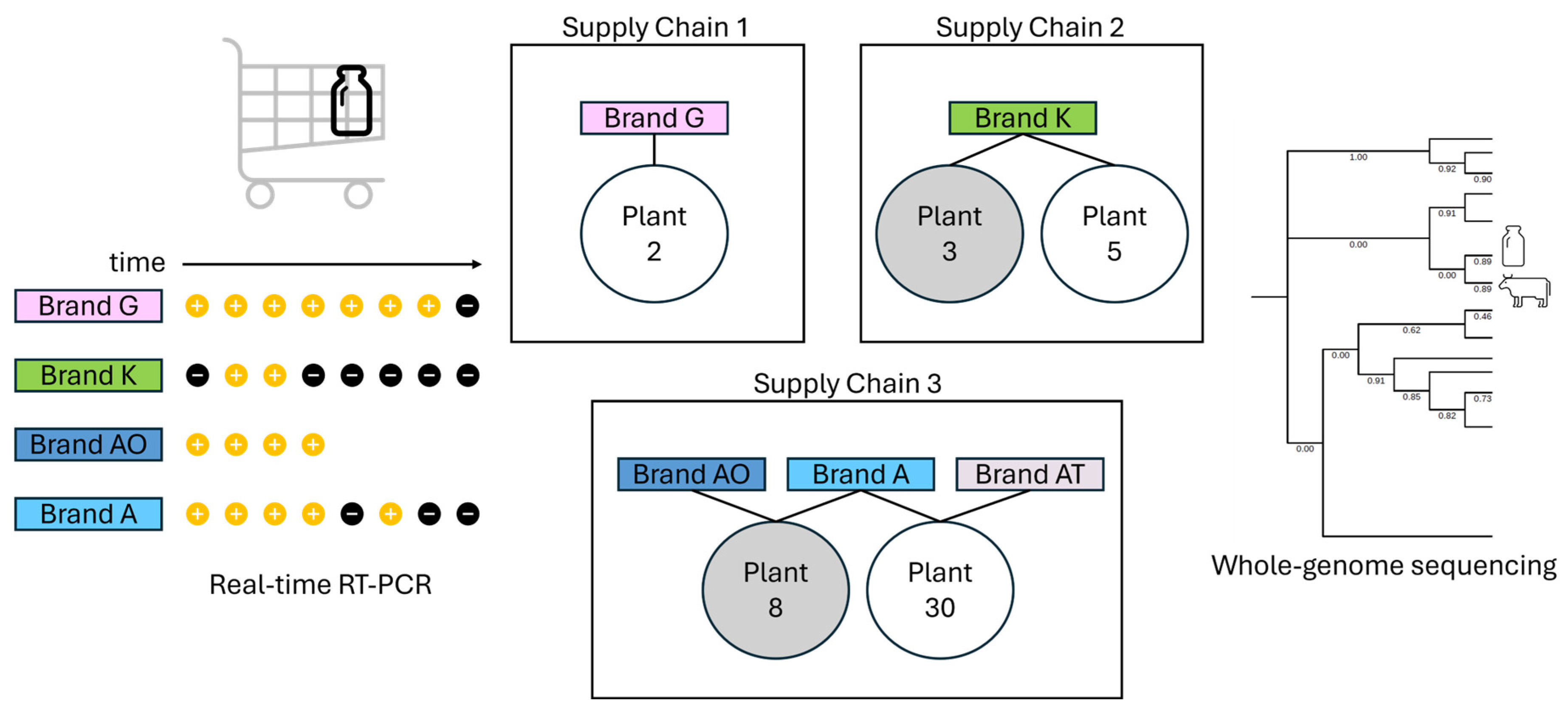 Gontu A, Sekhwal MK, Diaz Huemme A, Li L, Kutsaya S, Ling M, Doshi NK, Byukusenge M, Nissly RH. Pasteurized Milk Serves as a Passive Surveillance Tool for Highly Pathogenic Avian Influenza Virus in Dairy Cattle. Viruses. 2025; 17(10):1318. https://doi.org/10.3390/v17101318