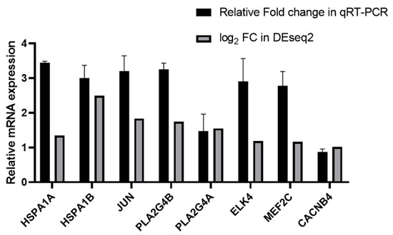 3.4. Validation of RNA-Seq Analysis by qRT-PCR