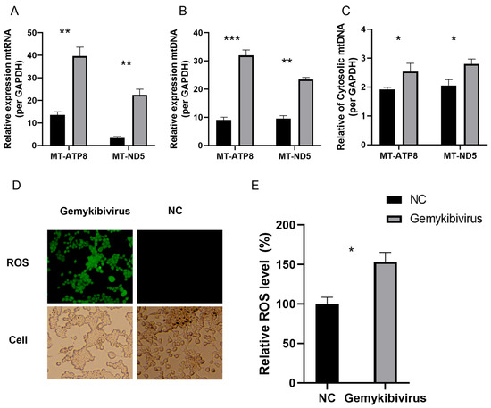 3.5. Gemykibivirus Induced mtDNA Release and Enhanced the ROS Levels