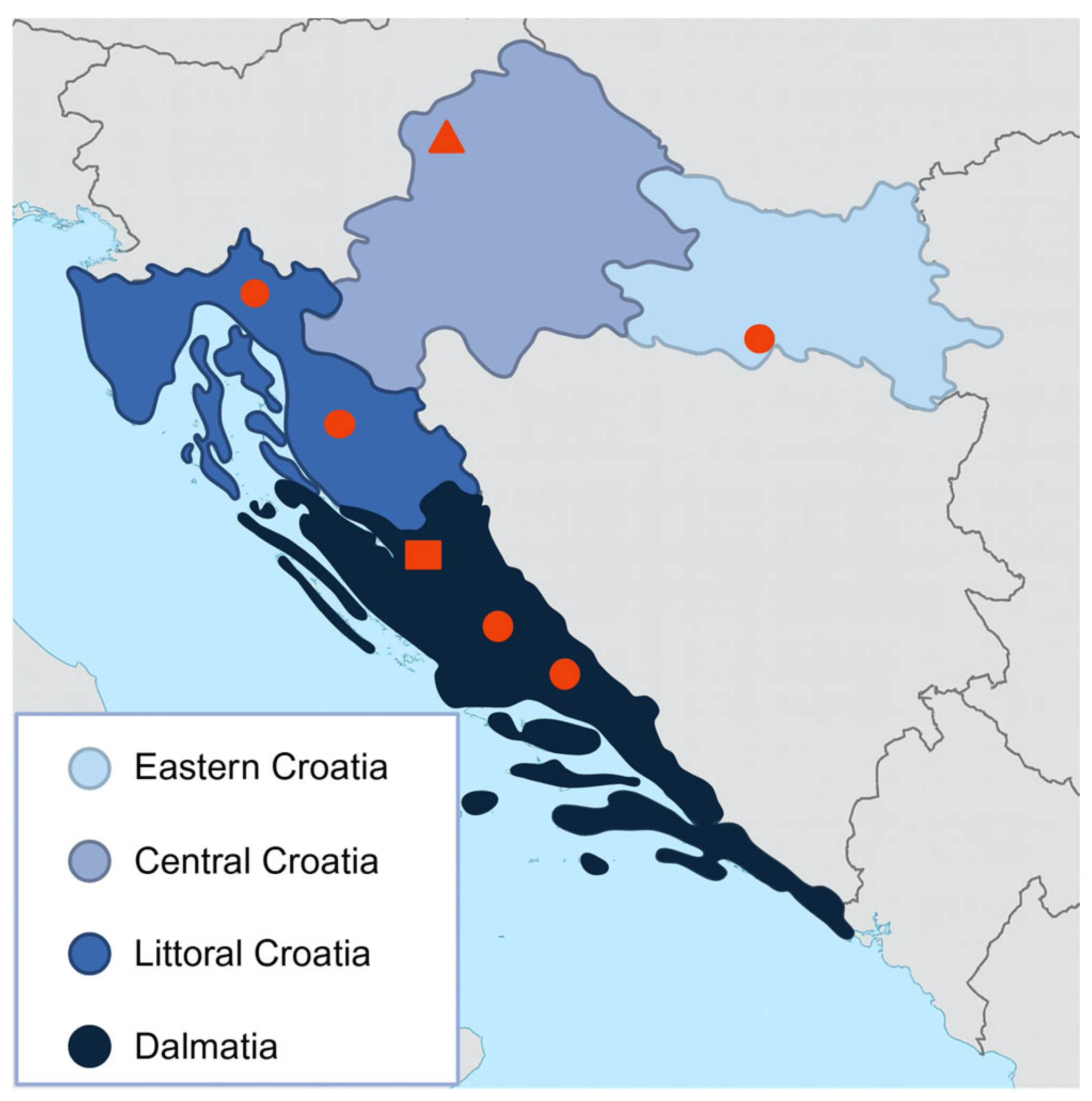 - Krčmar, S. Hard ticks (Acari, Ixodidae) of Croatia. Zookeys 2012, 234, 19–57. [Google Scholar] [CrossRef]