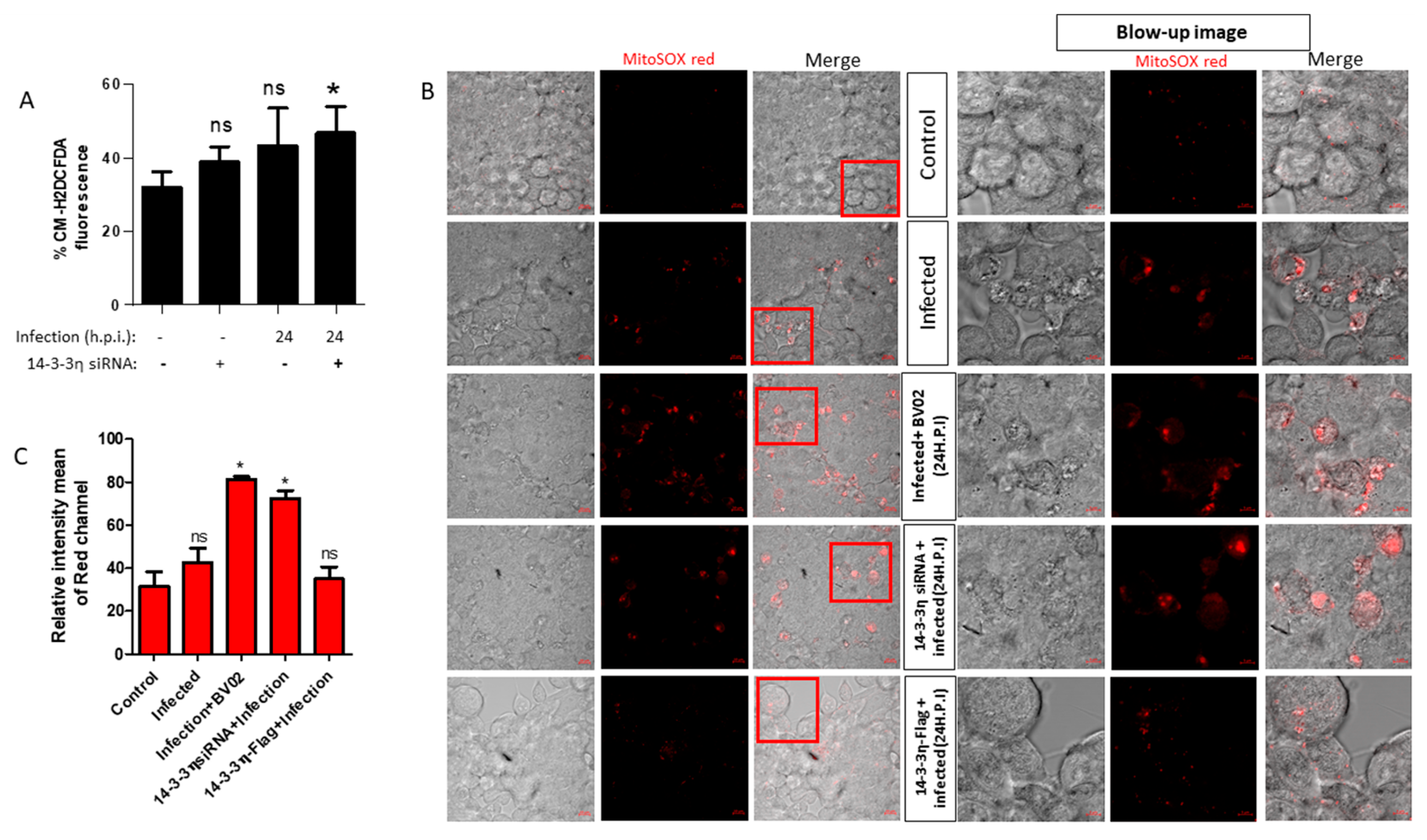 In addition, 14-3-3η knockdown increased cellular and mitochondrial ROS (mtROS) production, whereas 14-3-3η overexpression reduced mtROS accumulation. TRIM32 regulates mitochondrial ROS and restricts the influenza A virus by targeting PB1 for ubiquitination [