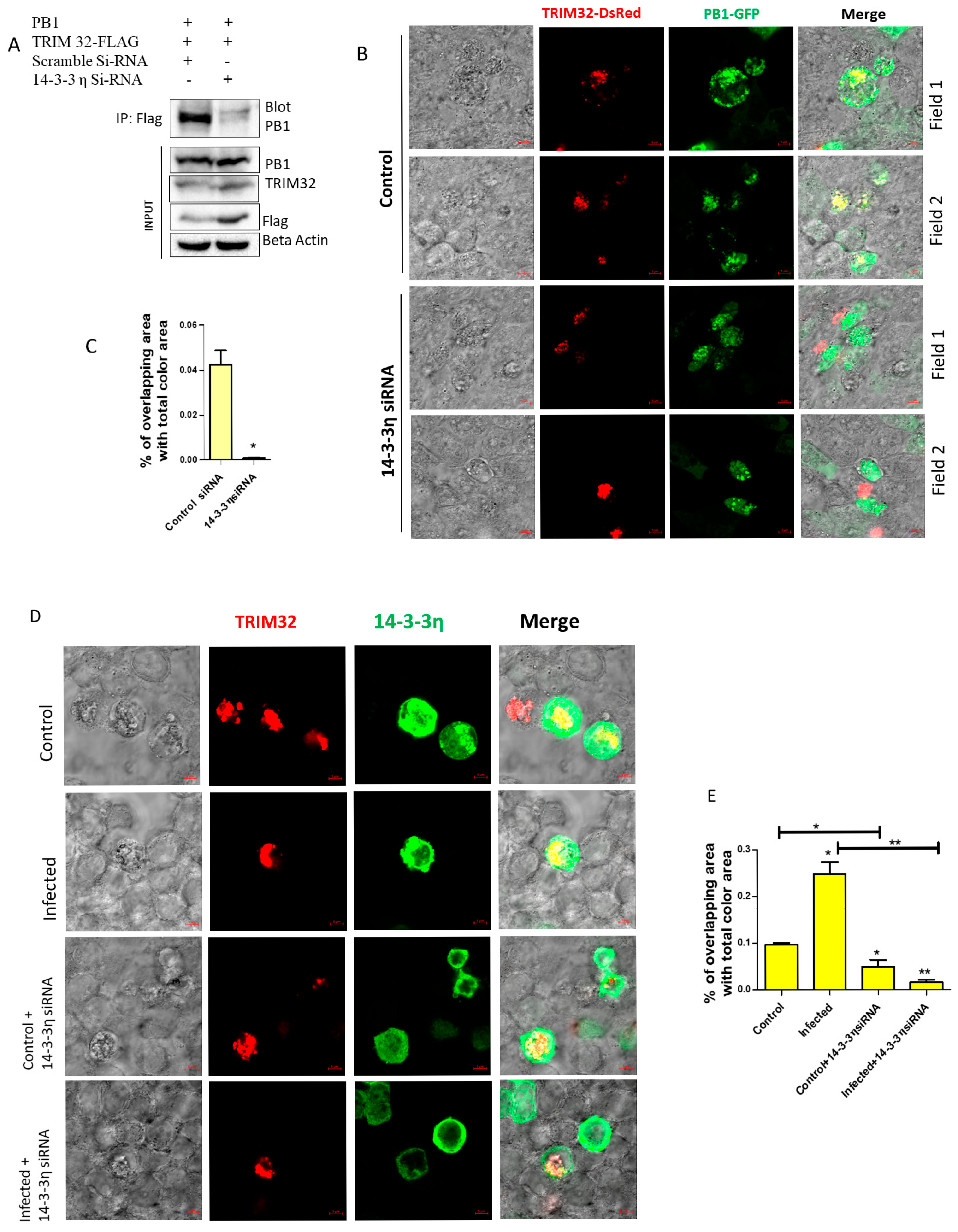 9]. However, the role of 14-3-3η in influenza A virus infection has remained largely unexplored. Since 14-3-3η regulates soluble components of TRIM32—and TRIM32 itself is known to control PB1 polymerase activity in influenza A virus [
