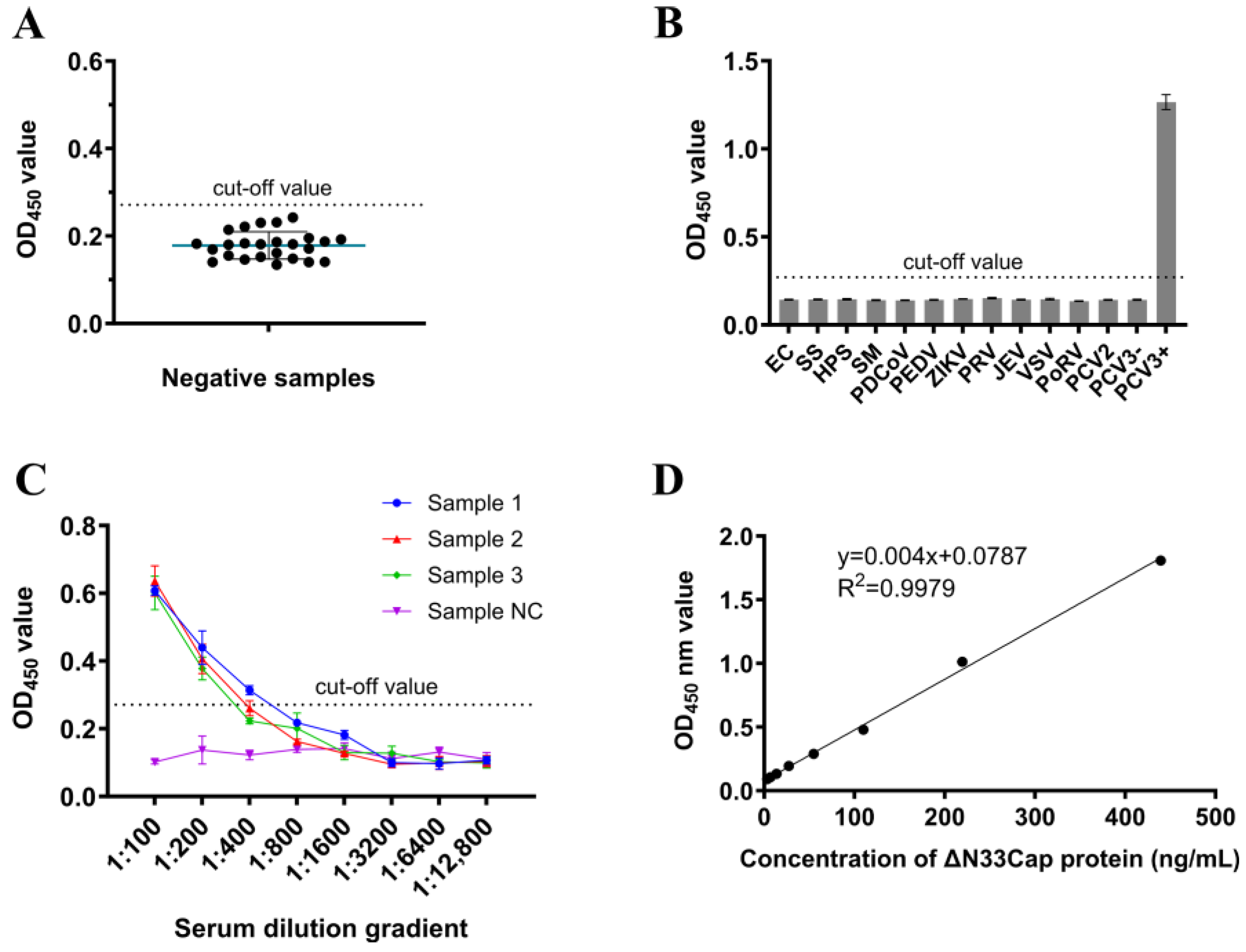 - Sun, M.; Wang, S.; Fang, Z.; Zhao, M.; Gao, Y.; An, T.; Tu, Y.; Wang, H.; Cai, X. A Sandwich ELISA for Quality Control of PCV2 Virus-like Particles Vaccine. Vaccines 2022, 10, 2175. [Google Scholar] [CrossRef] [PubMed]