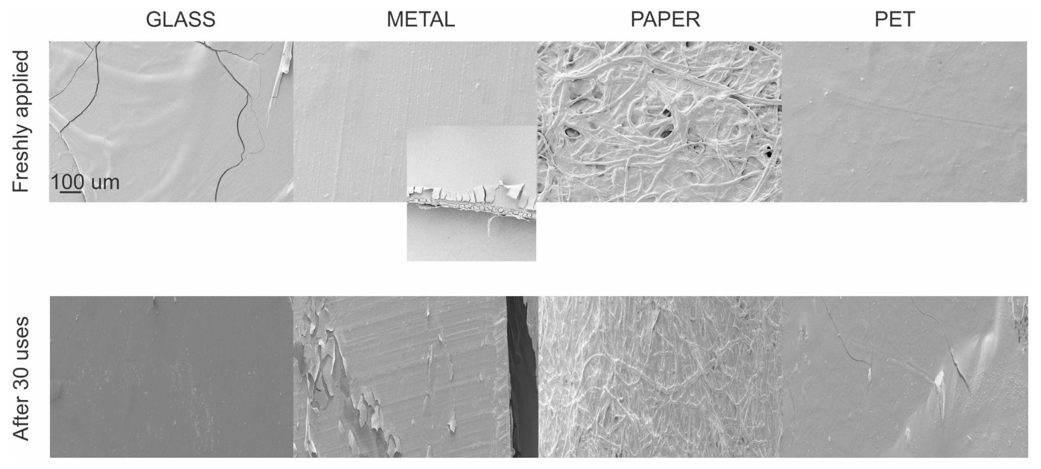 3.1. Film CH.CA@Cu Coating Performance on Different Surfaces