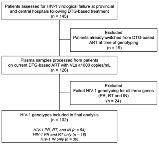 - Loosli, T.; Moore, C.B.; Buzaalirwa, L.; Byakwaga, H.; Çelikağ, I.; Chimbetete, C.; Ebasone, P.V.; Giandhari, J.; Han, N.; Huwa, J.; et al. Drug resistance in people with viremia on dolutegravir-based antiretroviral therapy in sub-Saharan Africa: The DTG RESIST study. Clin. Infect. Dis. 2025. [Google Scholar] [CrossRef]