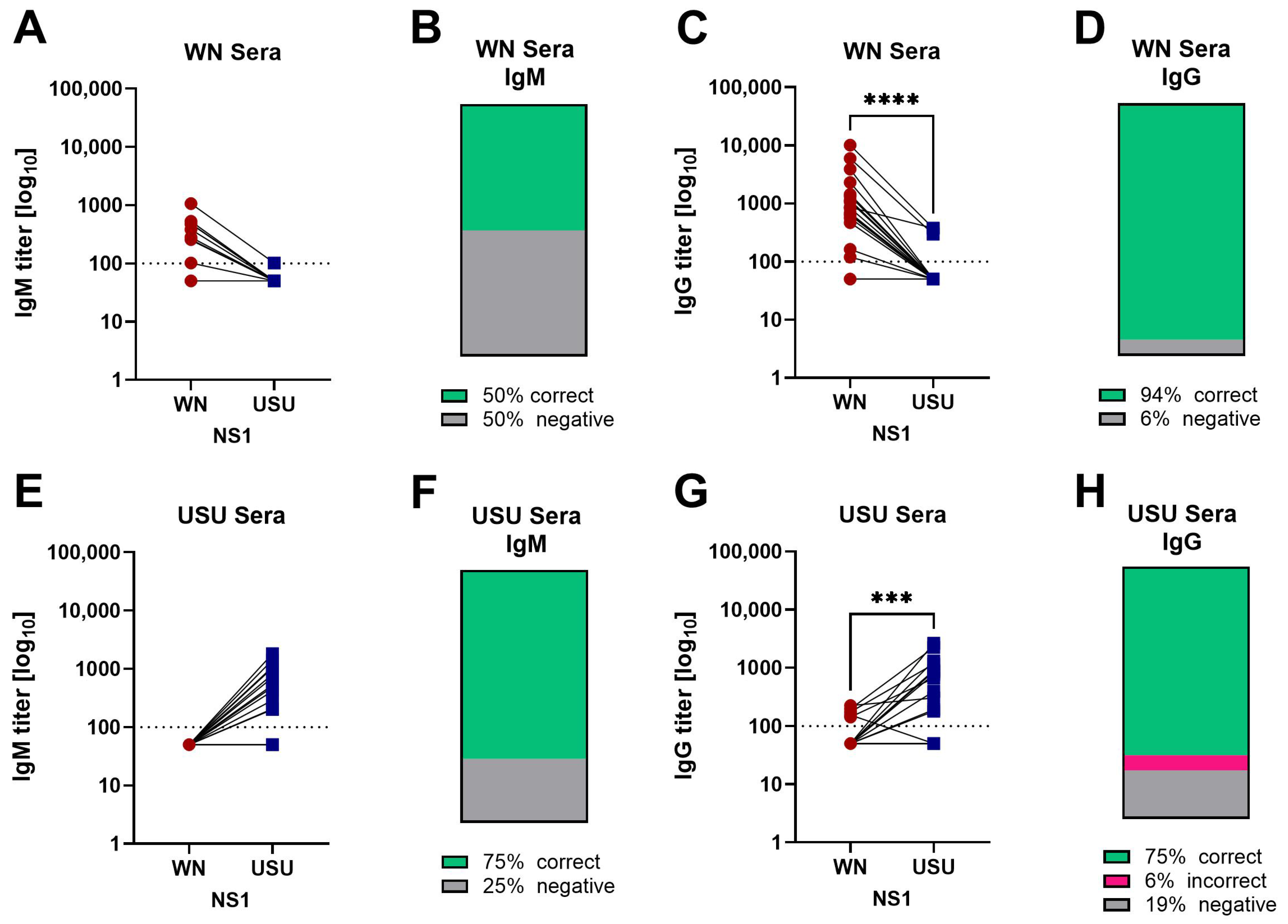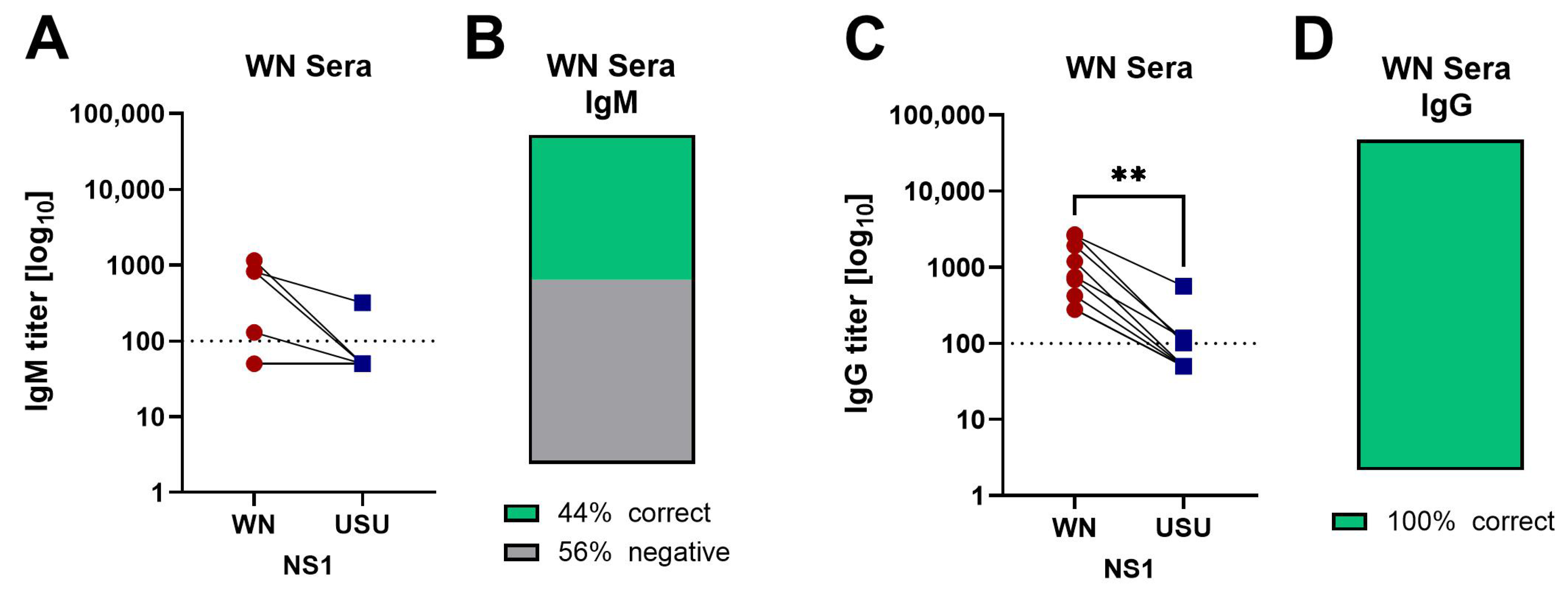 3.3. Comparison of WN and USU NS1 IgG and NT Titers