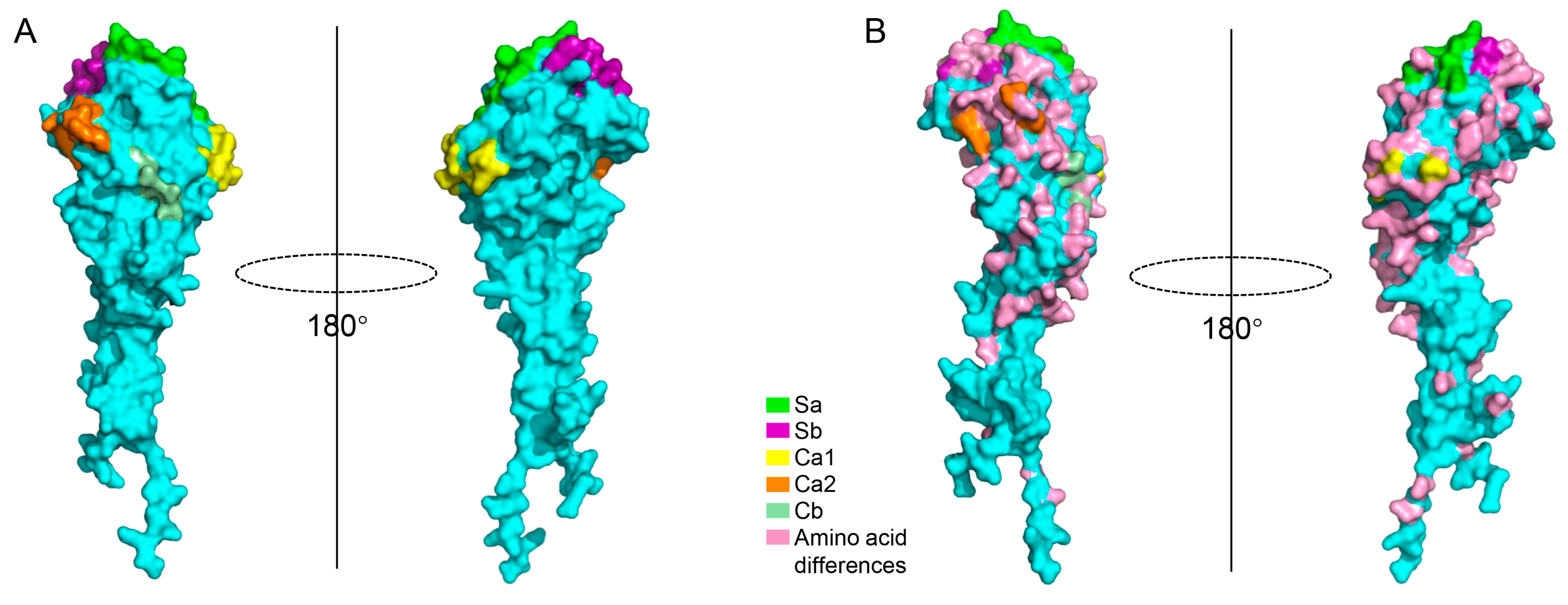 3.2. HA1 Protein Sequence Alignment Reveals Multiple Amino Acid Differences in Antigenic Sites