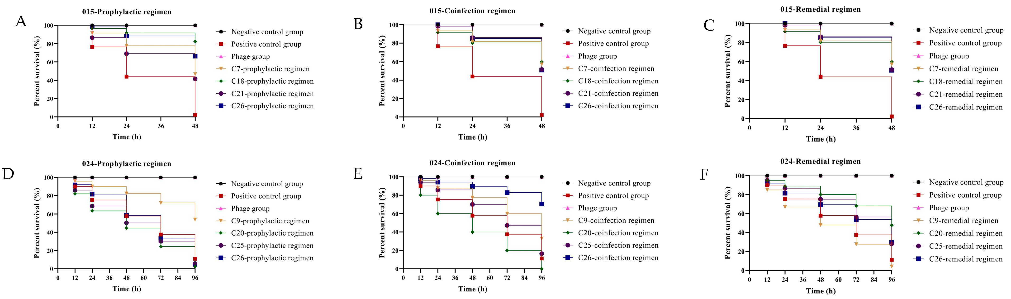 3.3. The Efficacy of Phage Cocktails In Vivo