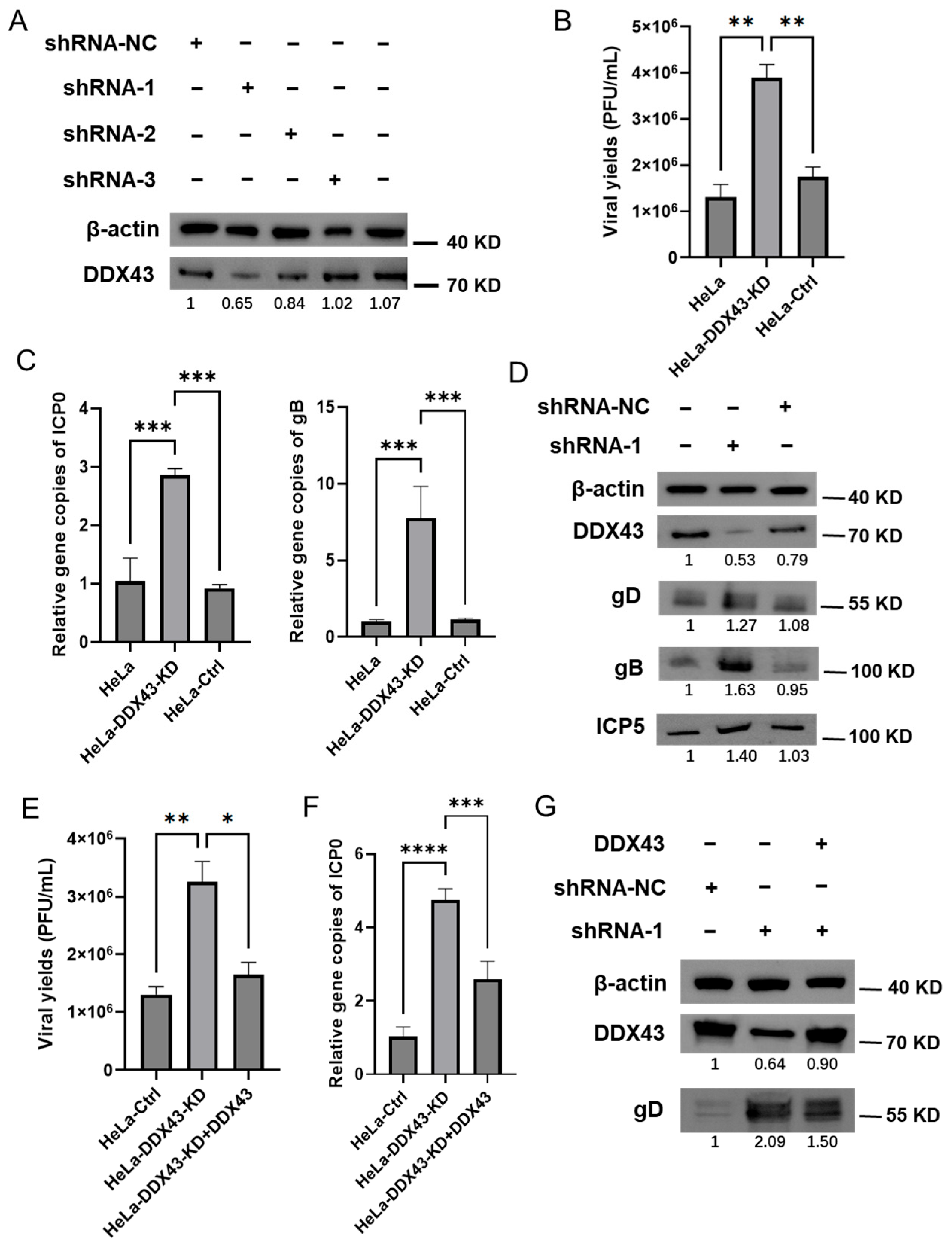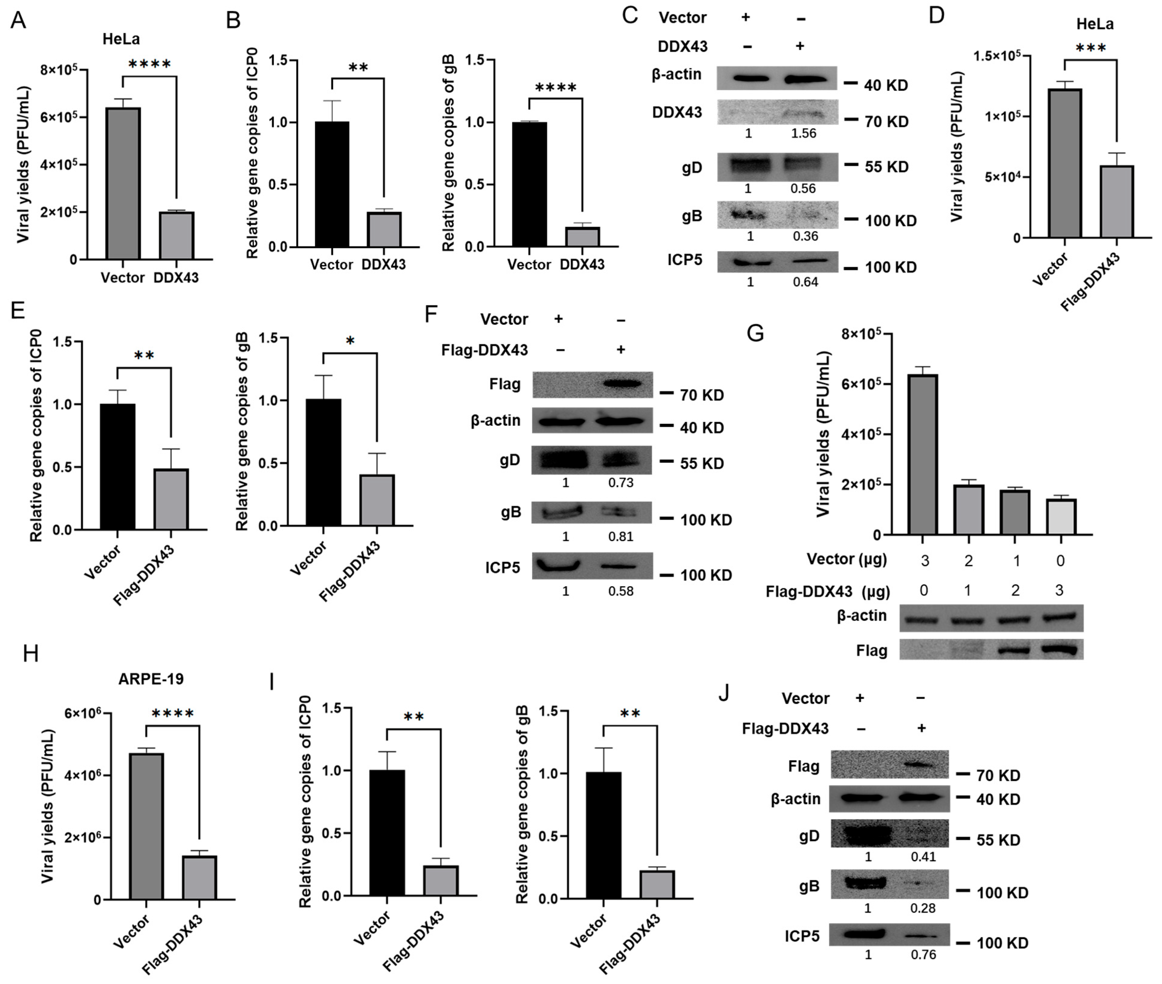 3.4. Overexpression of DDX43 Inhibits HSV-2 Replication