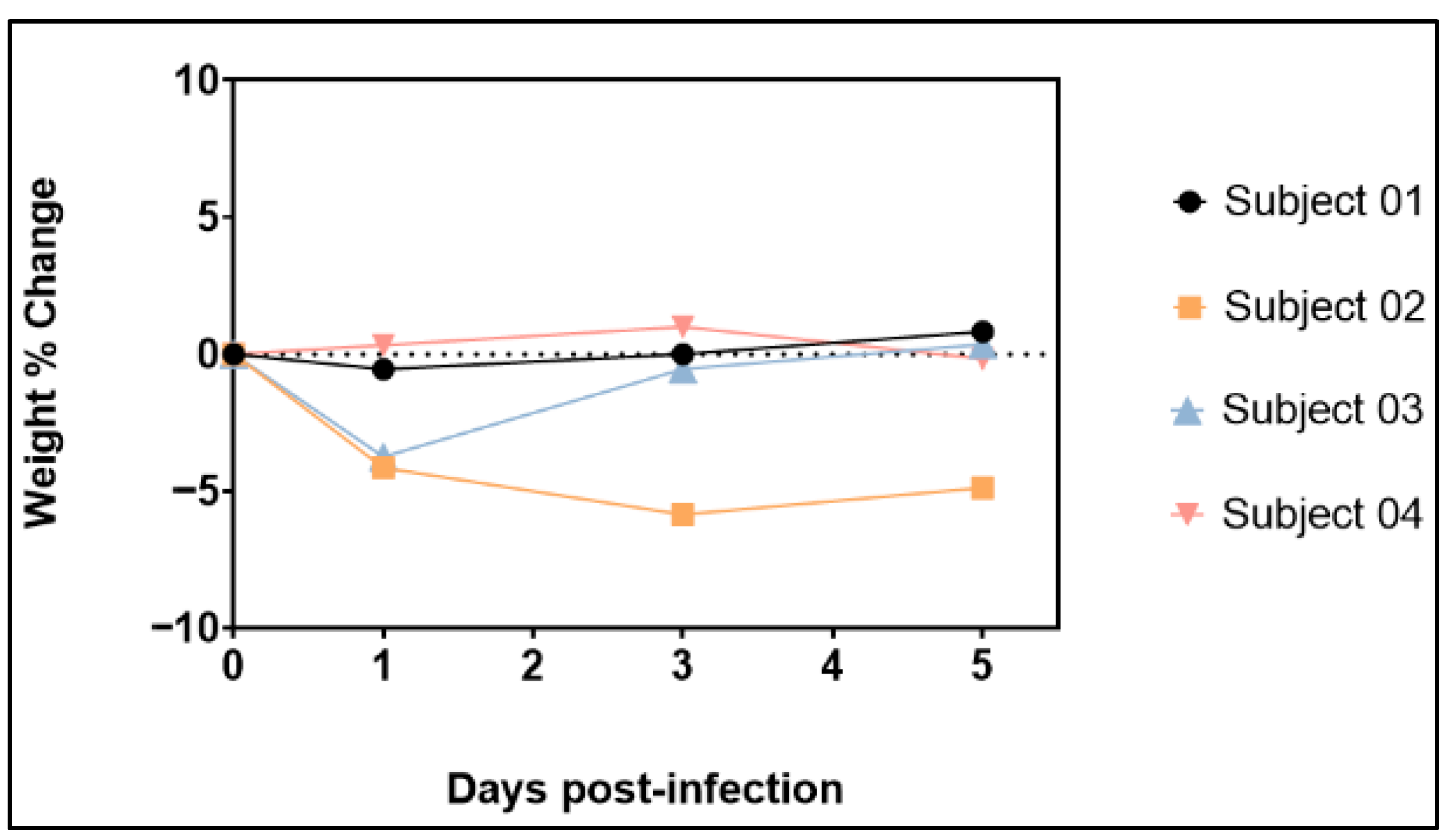 Chicago/Turabian StyleStorm, Nadia, Ming Lo, Nicholas Crossland, Margaux Seyler-Schmidt, Hilary Staples, Daniela Silva-Ayala, Ambre M. Laprise, Lauren St. Denis, Kyle Grosz, Aoife O’Connell, and et al. 2025. "An Intranasal Challenge Model in African Green Monkeys (Chlorocebus aethiops) for Mild-to-Moderate COVID-19 Disease Caused by Subvariant XBB.1.5" Viruses 17, no. 10: 1373. https://doi.org/10.3390/v17101373