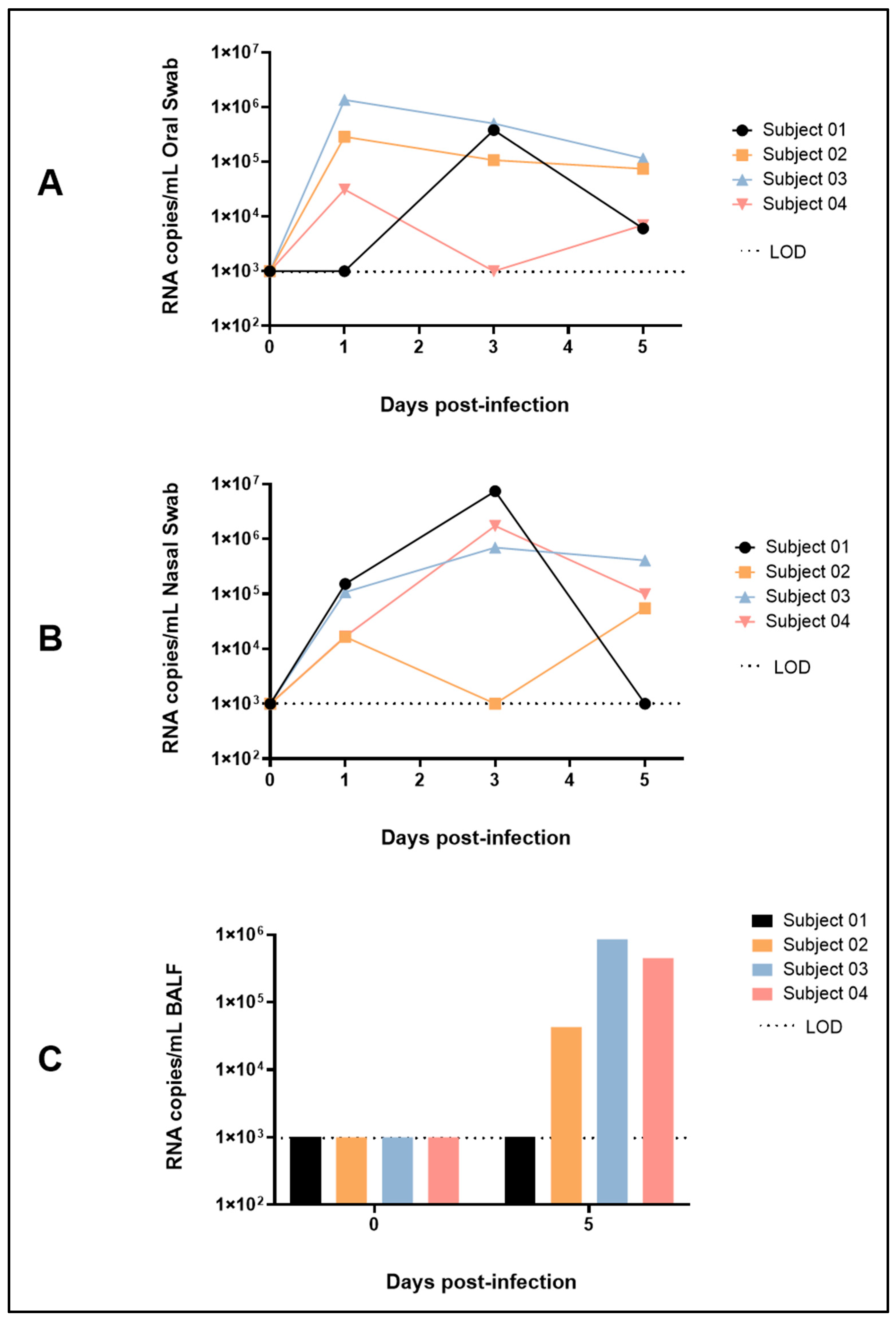 APA StyleStorm, N., Lo, M., Crossland, N., Seyler-Schmidt, M., Staples, H., Silva-Ayala, D., Laprise, A. M., St. Denis, L., Grosz, K., O’Connell, A., Gertje, H., Ripin, T., Decker, C., Mazur, M., Thurman, C., Espinoza, M., Morrow, G., Parks, C. L., Cooper, C. L., & Griffiths, A. (2025). An Intranasal Challenge Model in African Green Monkeys (Chlorocebus aethiops) for Mild-to-Moderate COVID-19 Disease Caused by Subvariant XBB.1.5. Viruses, 17(10), 1373. https://doi.org/10.3390/v17101373