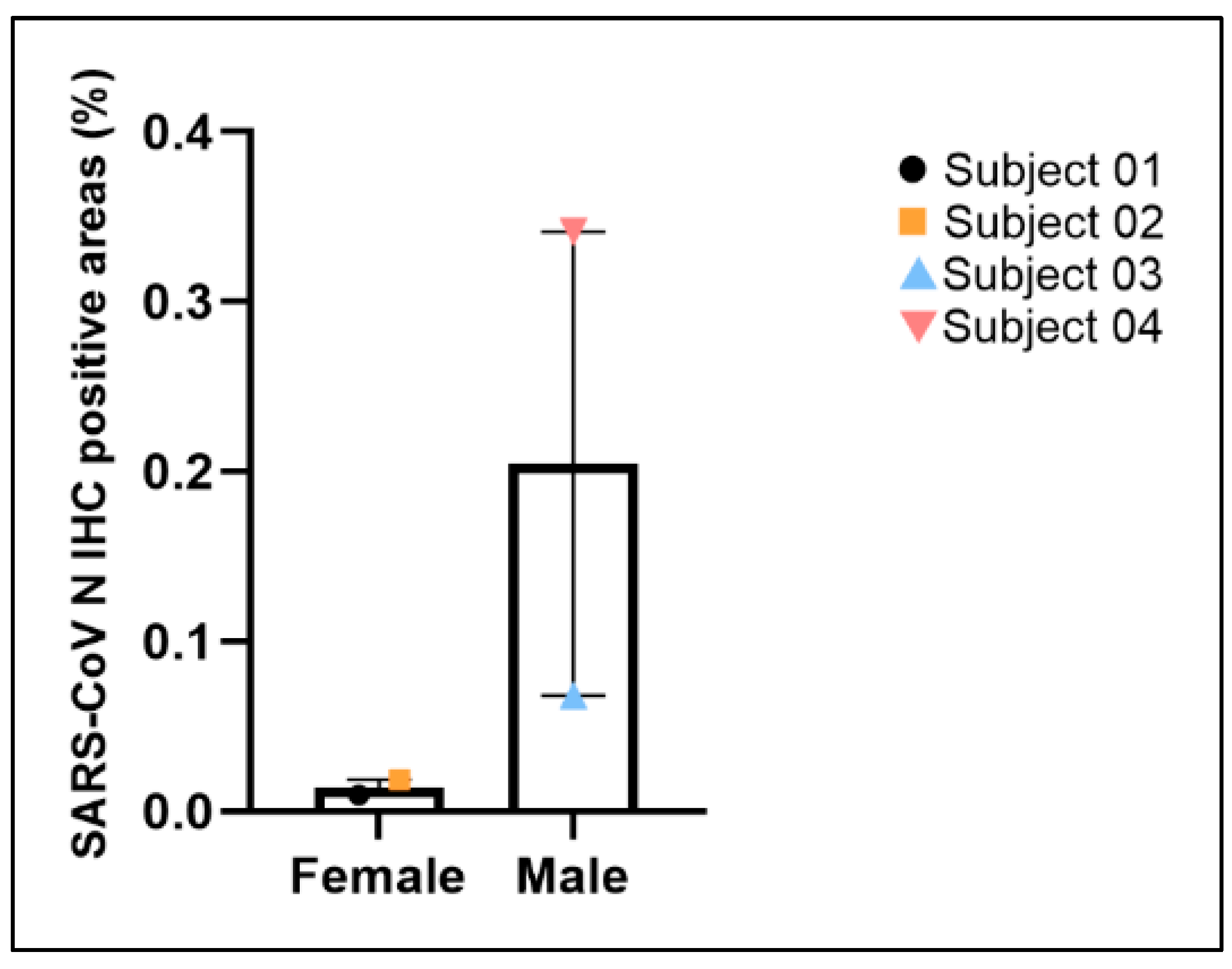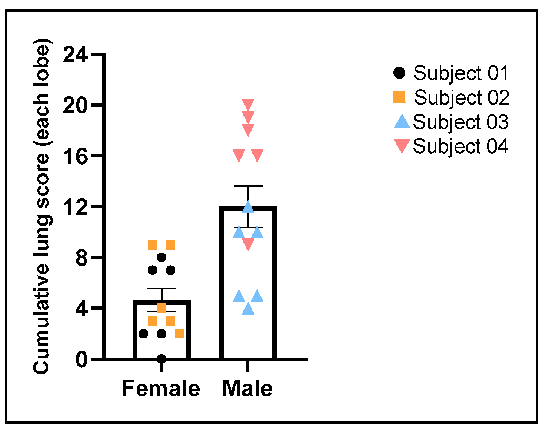 - Castellan, M.; Zamperin, G.; Franzoni, G.; Foiani, G.; Zorzan, M.; Drzewnioková, P.; Mancin, M.; Brian, I.; Bortolami, A.; Pagliari, M.; et al. Host response of Syrian hamster to SARS-CoV-2 infection including differences with humans and between sexes. Viruses 2023, 15, 428. [Google Scholar] [CrossRef]