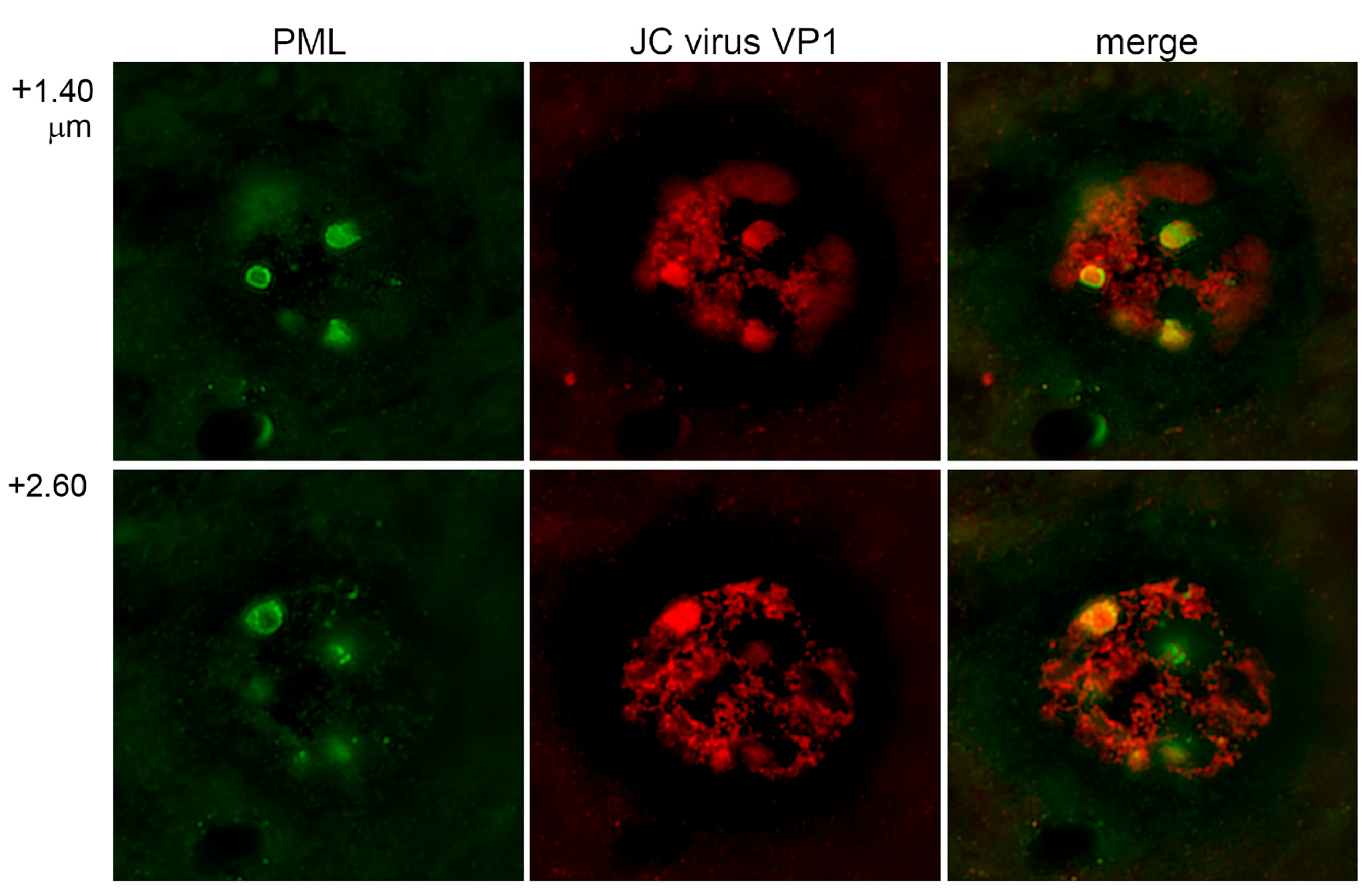 - Shishido-Hara, Y.; Higuchi, K.; Ohara, S.; Duyckaerts, C.; Hauw, J.J.; Uchihara, T. Promyelocytic leukemia nuclear bodies provide a scaffold for human polyomavirus JC replication and are disrupted after development of viral inclusions in progressive multifocal leukoencephalopathy. J. Neuropathol. Exp. Neurol. 2008, 67, 299–308. [Google Scholar] [CrossRef] [PubMed][Green Version]