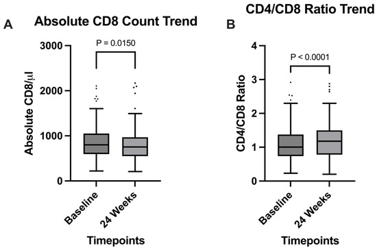 Immunologically, we observed a significant increase in the CD4+/CD8+ ratio (