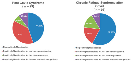 Frequency distribution of IgM-positive antibodies in post-COVID syndrome and chronic fatigue syndrome after COVID-19.