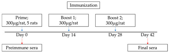 Five rats were immunized with the recombinant protein p15E, another five rats were immunized with the recombinant protein gp70 according to the immunization schedule (Figure 4).