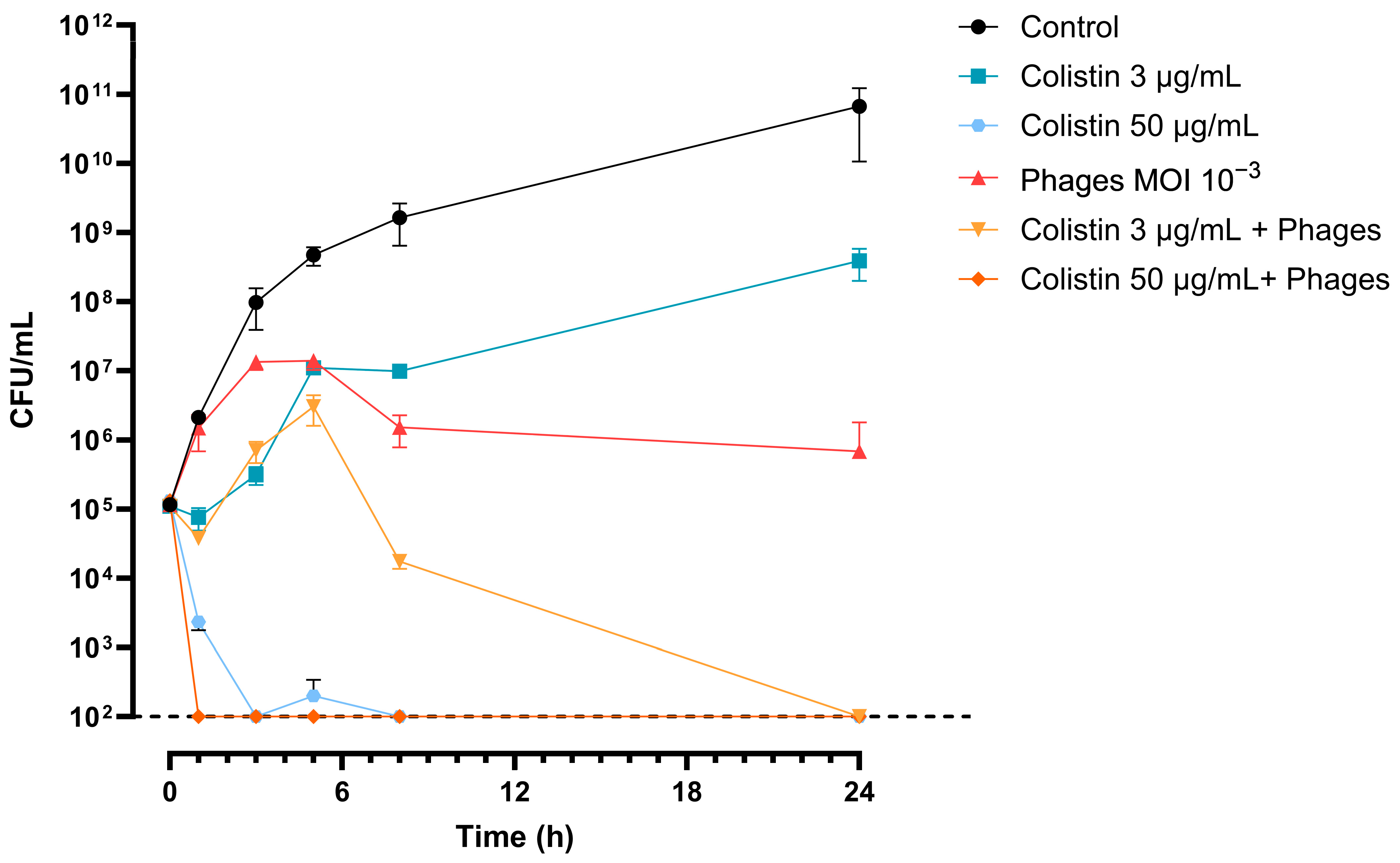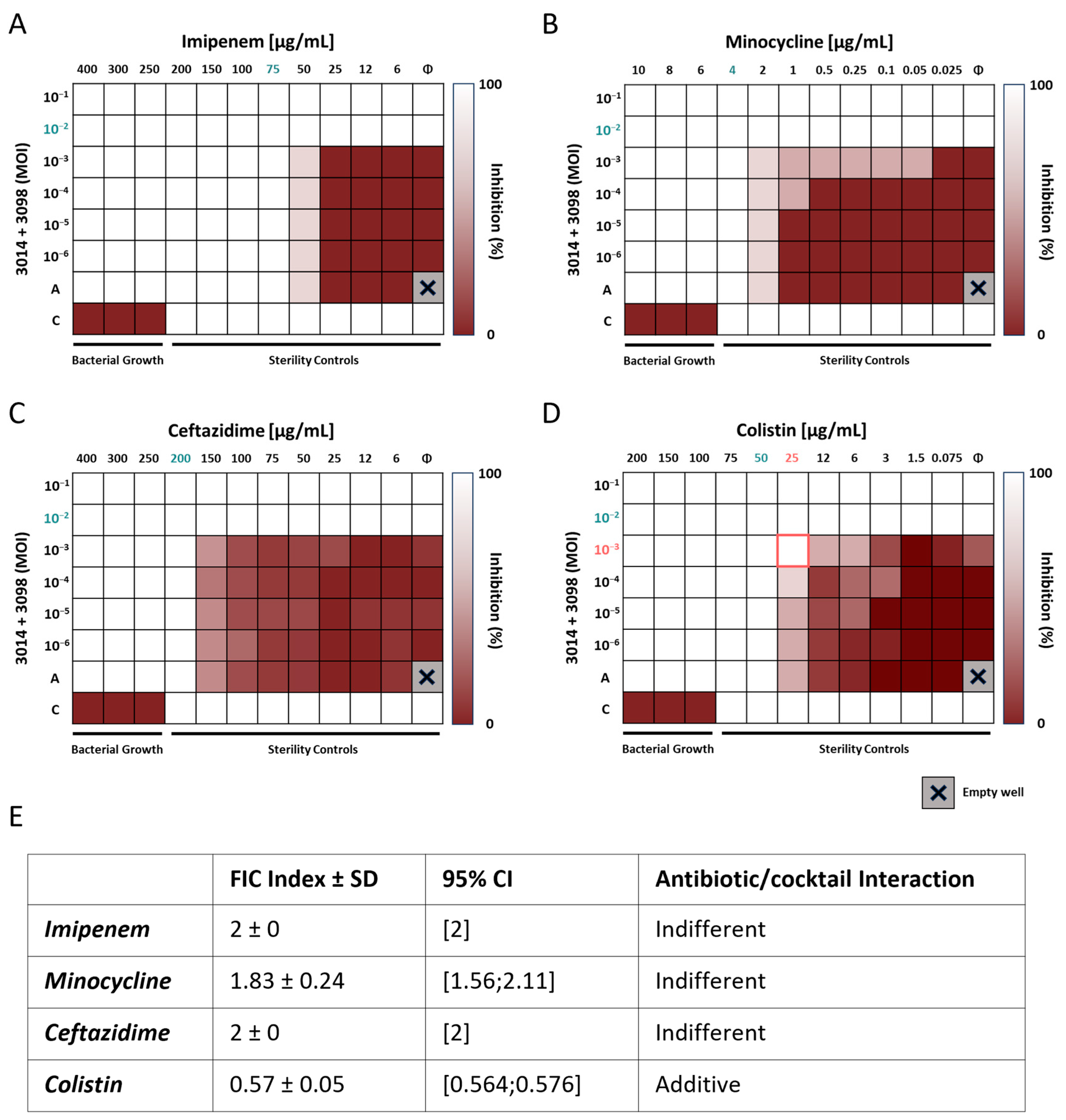 3.8. The 3014/3098 Phage Cocktail Showed Additivity with Colistin In Vitro