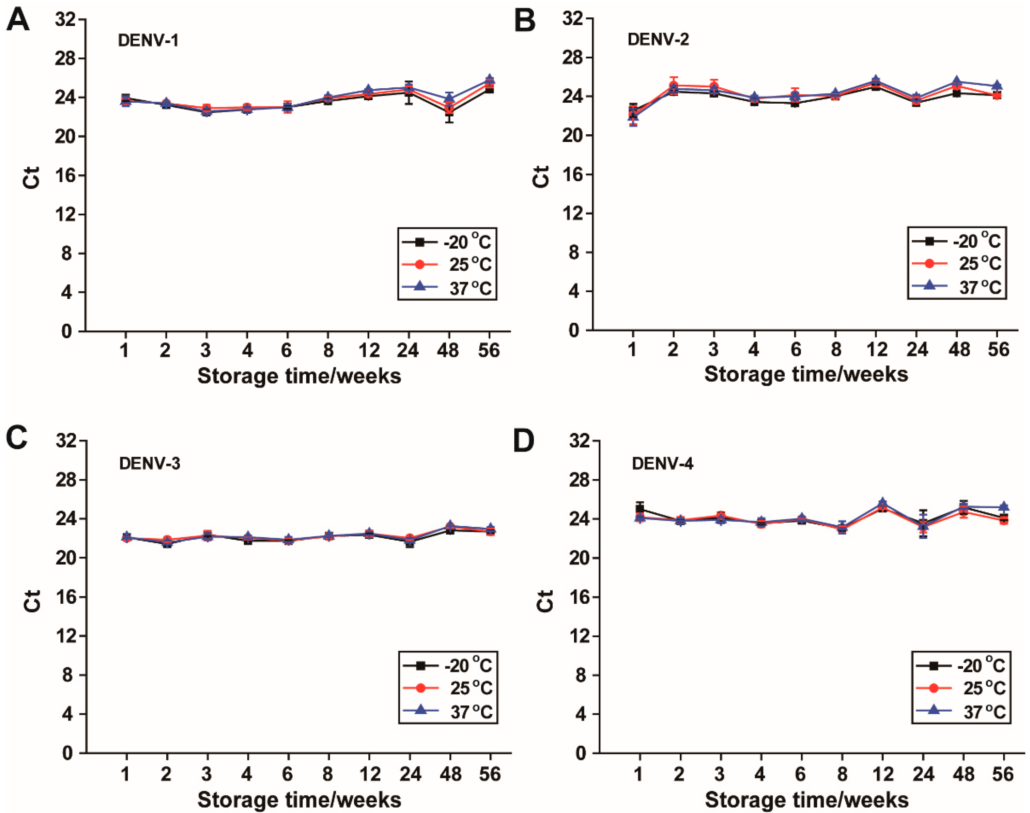 Table 1. Ct values were recorded at each time point to monitor Dengue RNA stability.