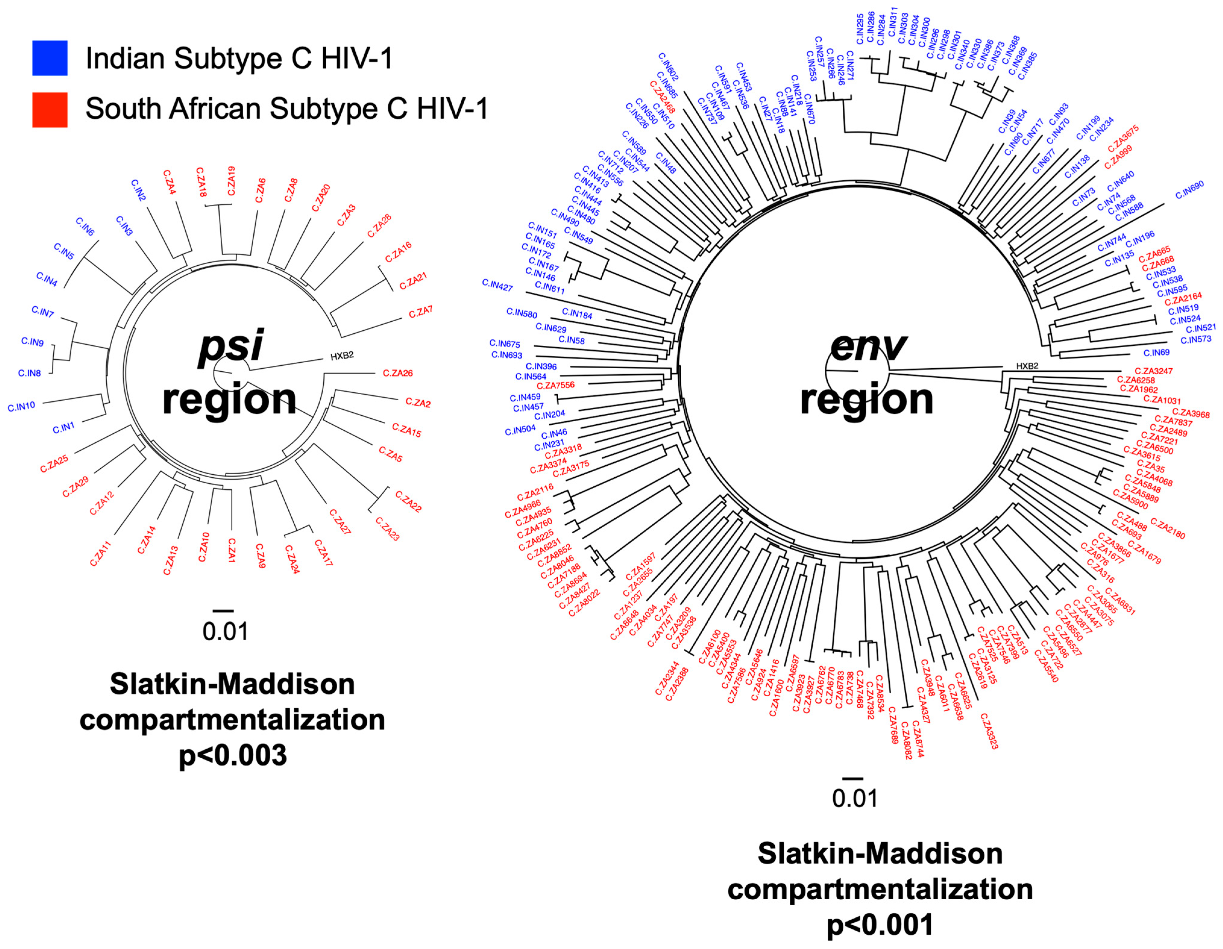 3.1. Subtype C HIV-1 Isolated from India (IN) and South Africa (ZA) Were Genetically Distinct