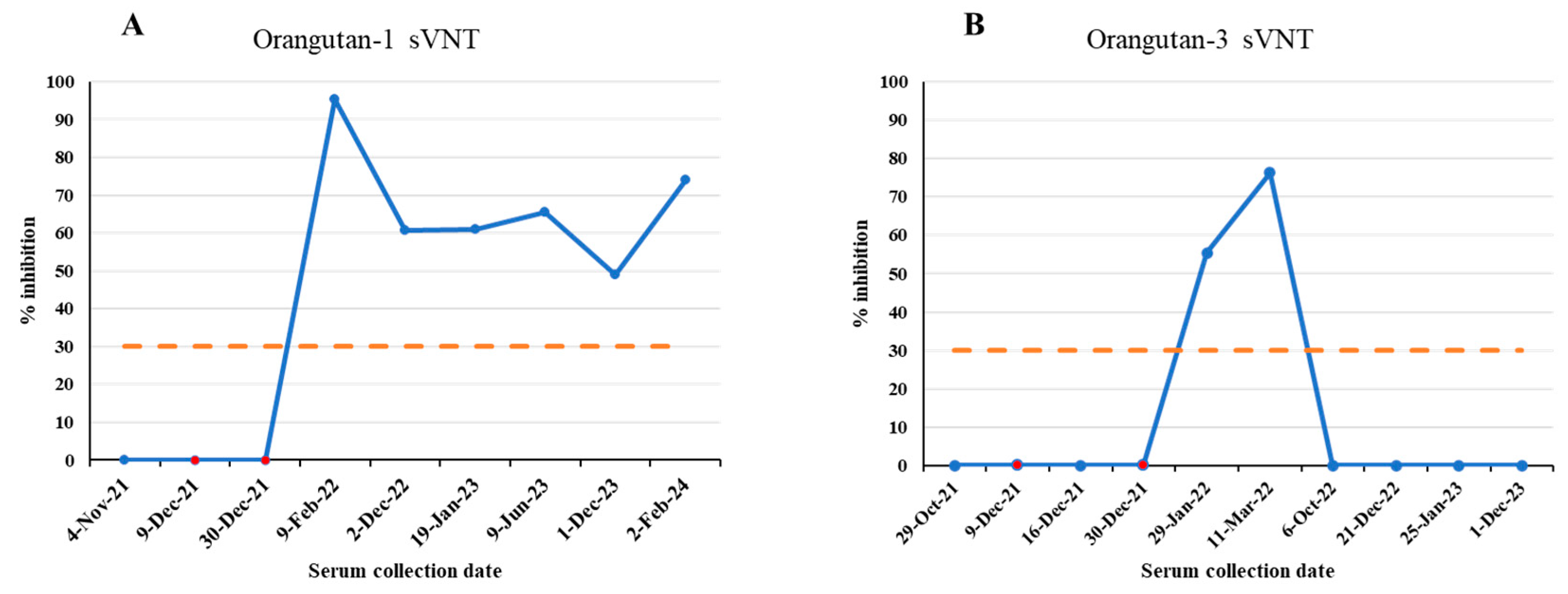 3.2. sVNT and N-ELISA Results of Samples at Brookfield Zoo