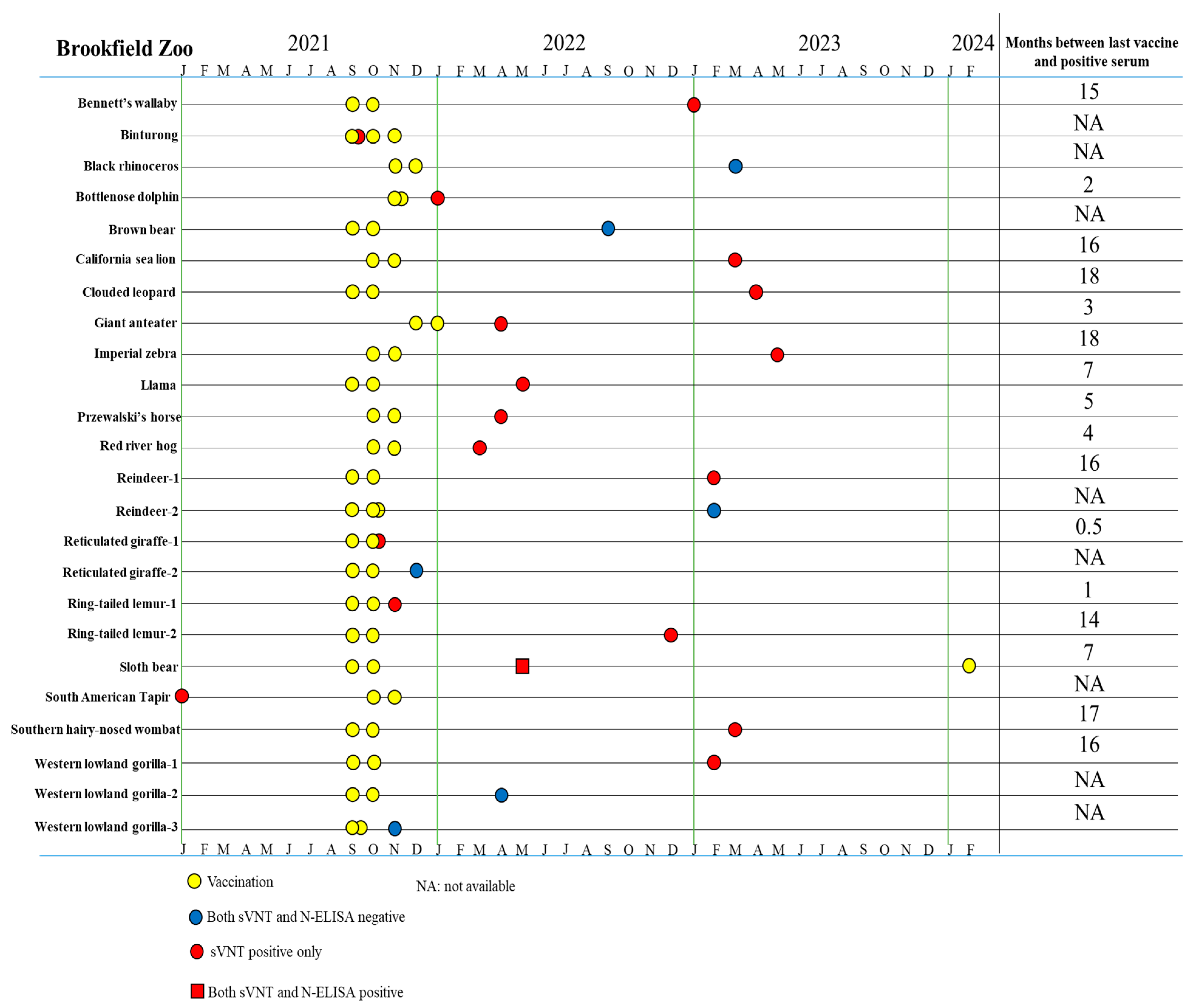 Arvidson M, Subedi YR, Kayastha S, Mitchell A, Alvarado K, Deng X, Terio K, Allender M, Wang L. SARS-CoV-2 Serological Surveillance of Both Vaccinated and Unvaccinated Zoo Animals with the Identification of a Sloth Bear and a Tapir with Previous Infection. Viruses. 2025; 17(11):1459. https://doi.org/10.3390/v17111459