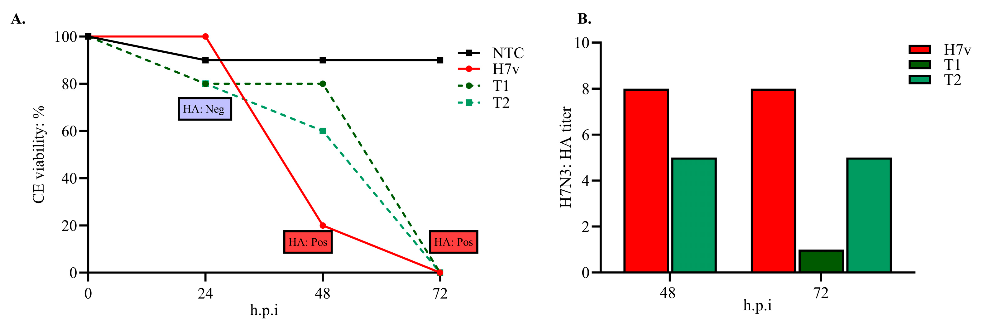 2.6. Viral Inhibition Assay of the EOs Formulation Against AIV H7N3 in Chicken Embryos