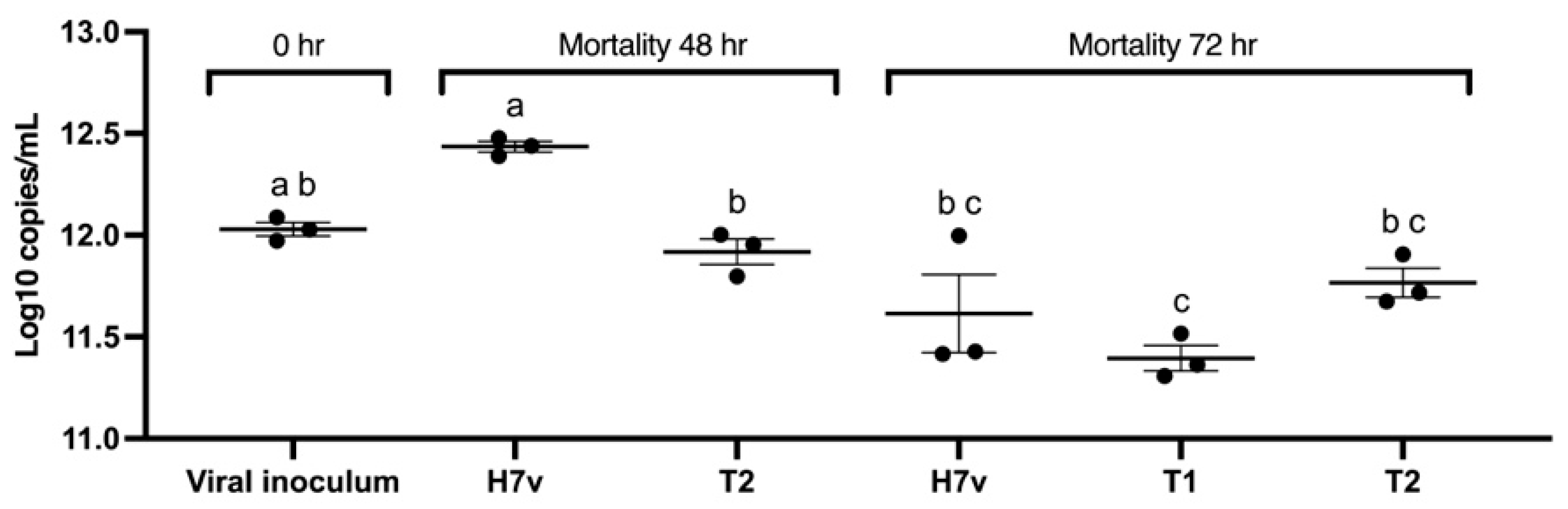 | Viral inoculum (0 h) | 12.03 ± 0.03 a,b |