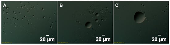 3.3. Condensate Formation Observed from Differential Interference Contrast Microscopy