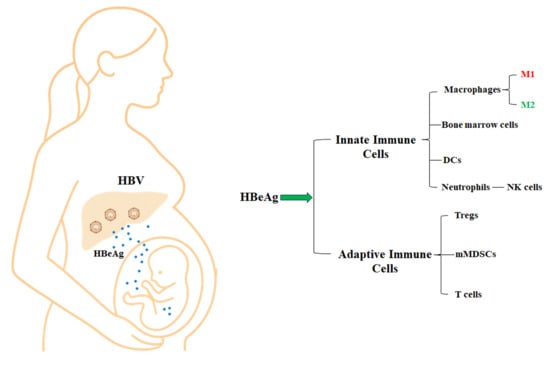 - Tian, Y.; Kuo, C.F.; Akbari, O.; Ou, J.H. Maternal-Derived Hepatitis B Virus e Antigen Alters Macrophage Function in Offspring to Drive Viral Persistence after Vertical Transmission. Immunity 2016, 44, 1204–1214. [Google Scholar] [CrossRef]