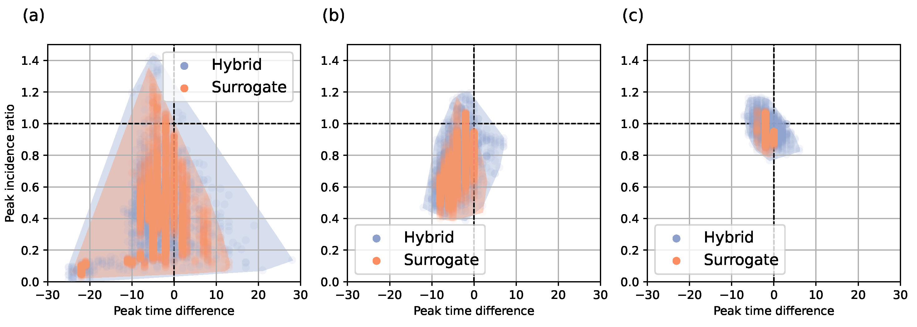- Computational cost relative to surrogate modeling. Although faster than the pure network model, the hybrid approach is still slower than the surrogate approach.