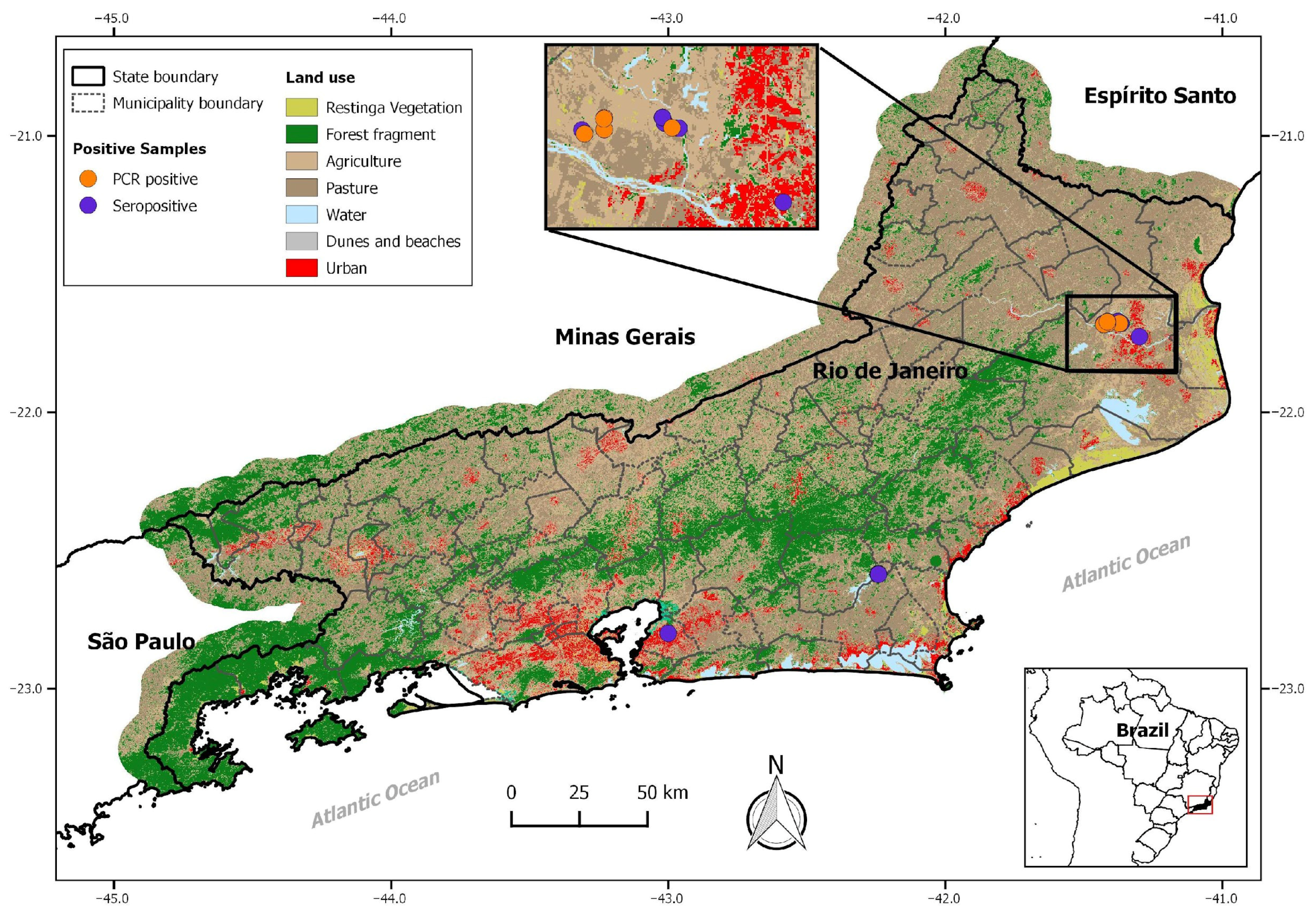 - Lemos, E.R.S.d.; D’Andrea, P.S. Trabalho de Campo com Animais: Procedimentos, Riscos e Biossegurança; Editora Fiocruz: Rio de Janeiro, Brazil, 2014; p. 77. [Google Scholar]