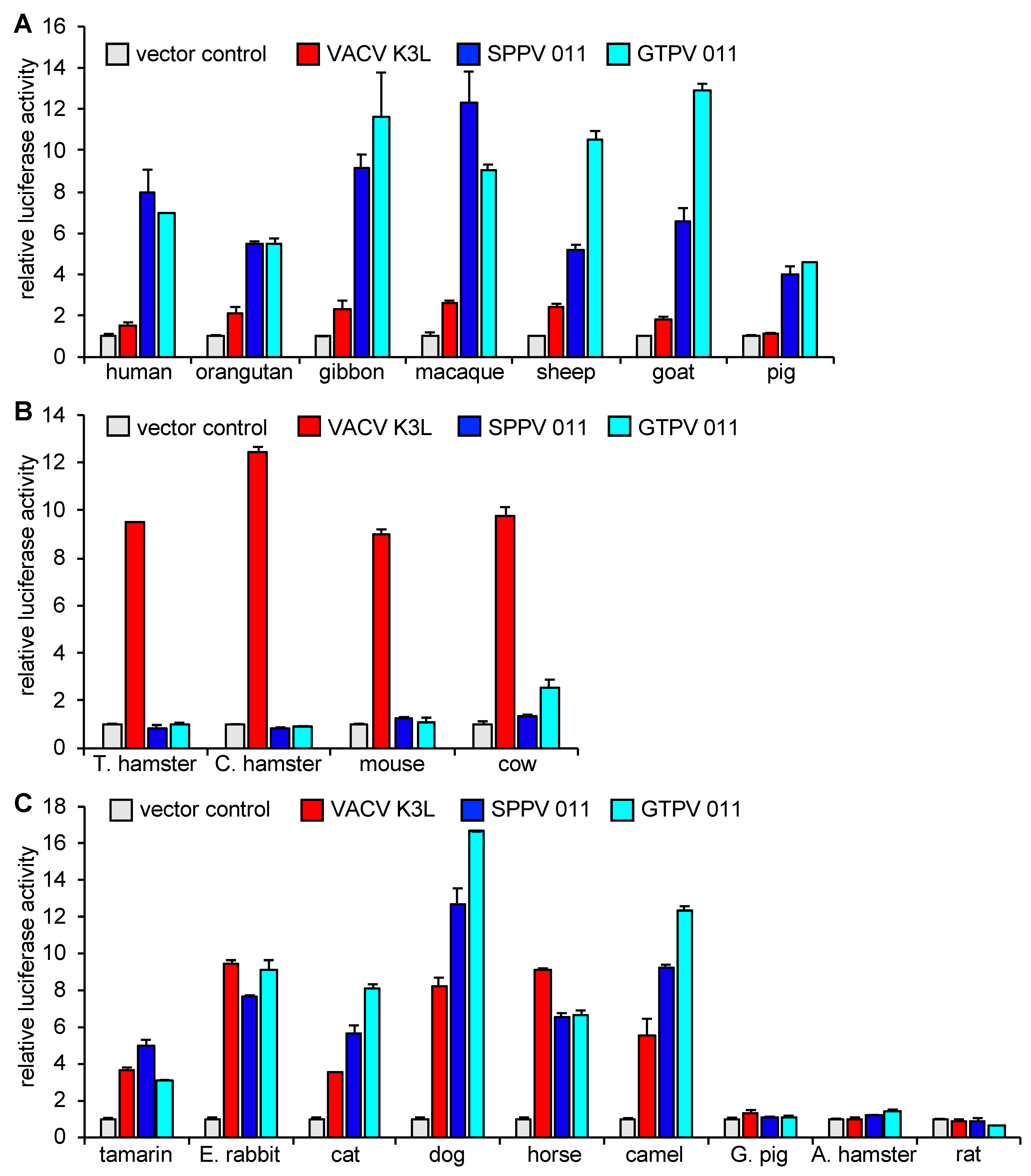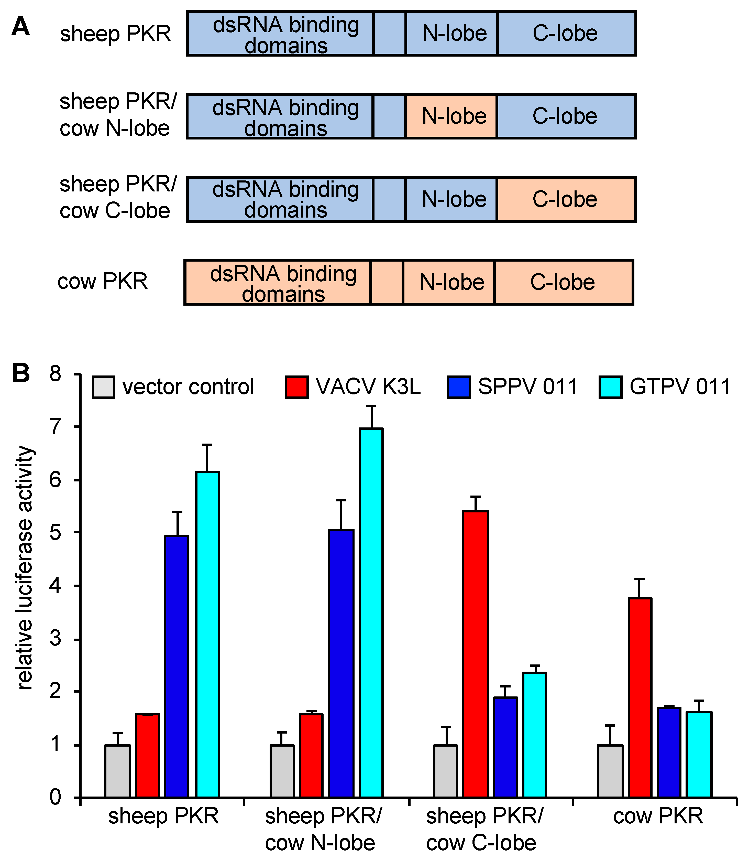 3.1. Species-Specific PKR Inhibition by VACV, SPPV, and GTPV K3 Orthologs