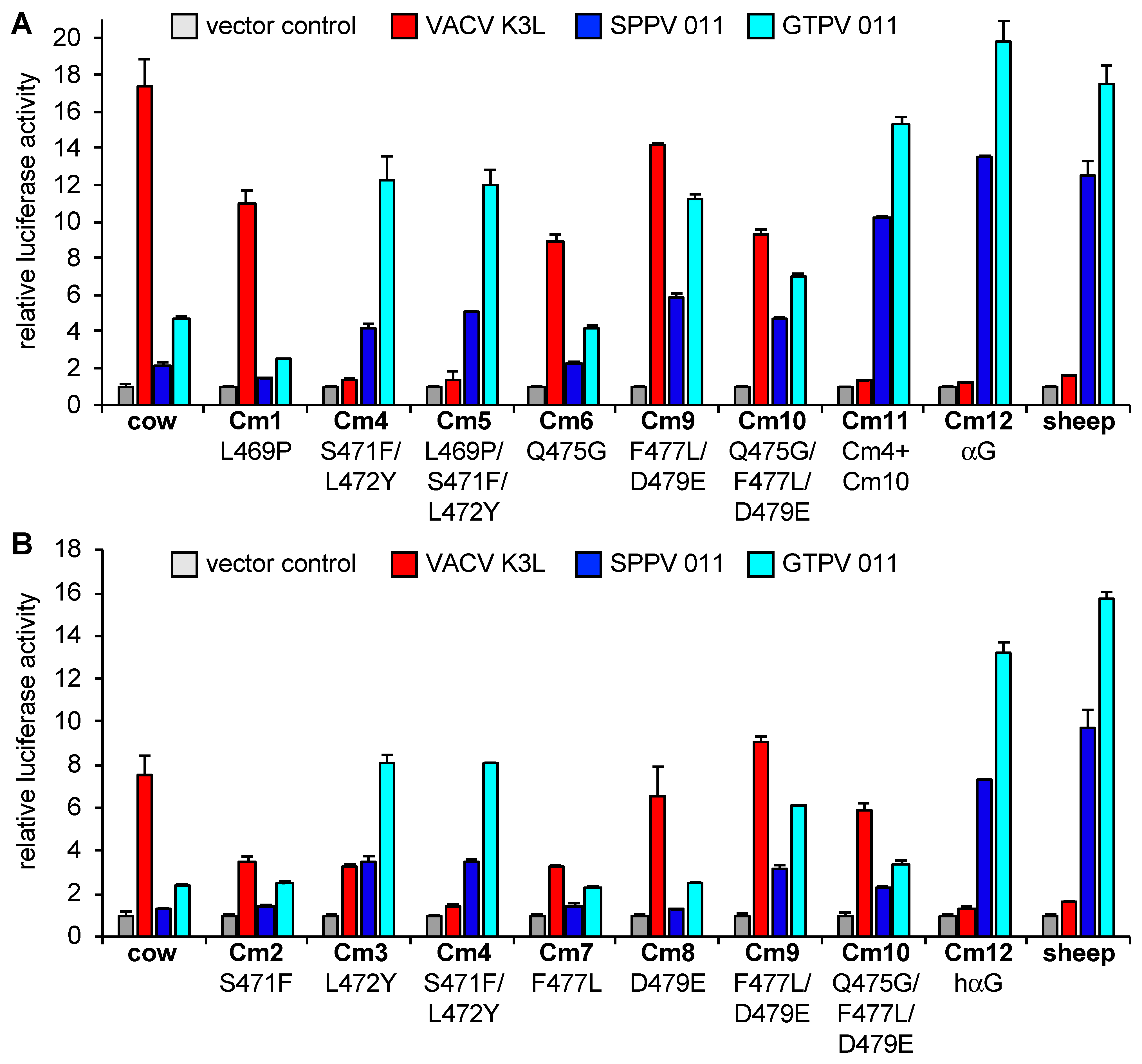 | Cm10 | Q475G, F477L, D479E | ACTTCTTTAGAAACAGGGAAGTTATTTGAAGATCTA | cow PKR |