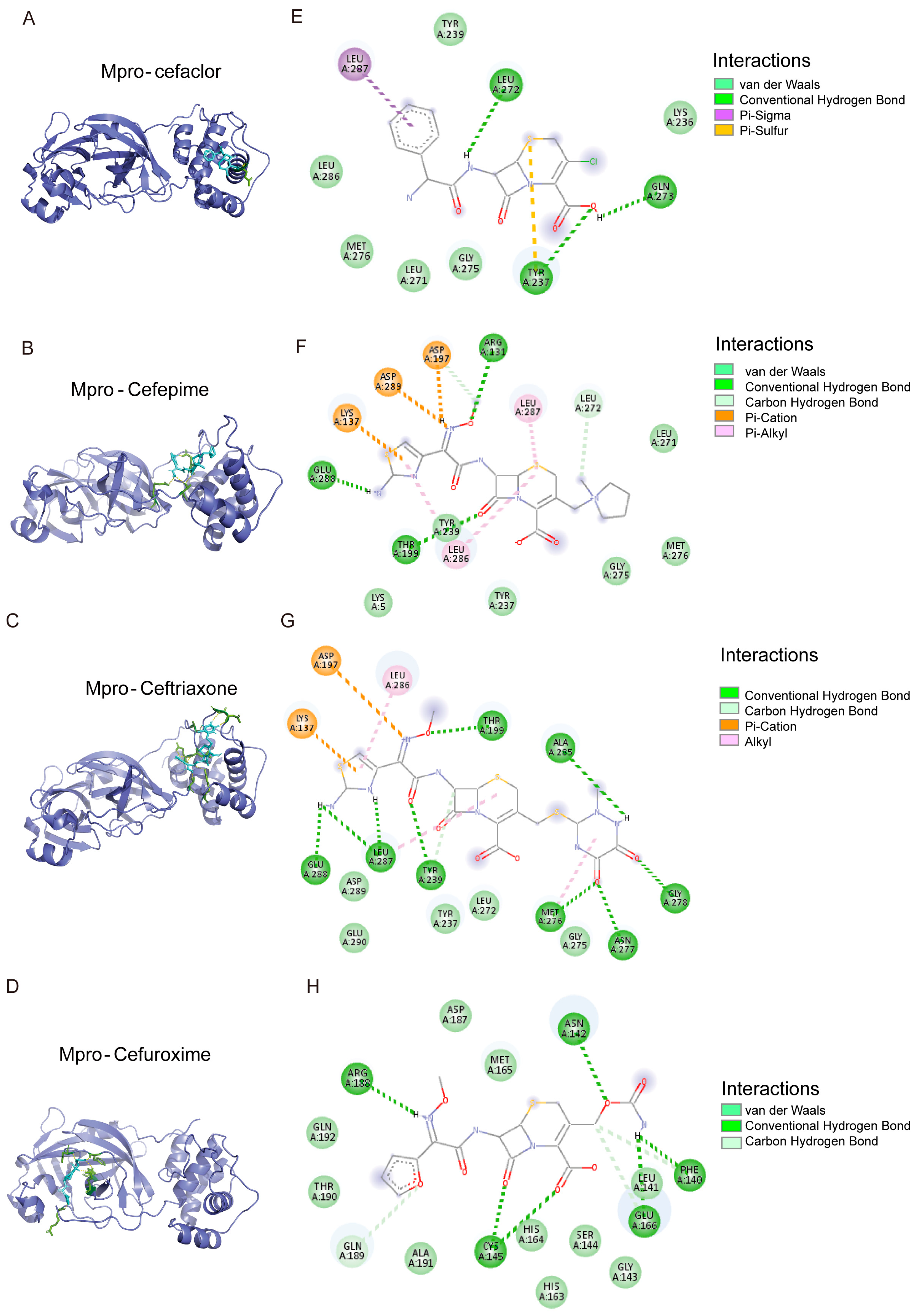- Delgado, C.P.; Rocha, J.B.T.; Orian, L.; Bortoli, M.; Nogara, P.A. In silico studies of M(pro) and PL(pro) from SARS-CoV-2 and a new class of cephalosporin drugs containing 1,2,4-thiadiazole. Struct. Chem. 2022, 33, 2205–2220. [Google Scholar] [CrossRef]