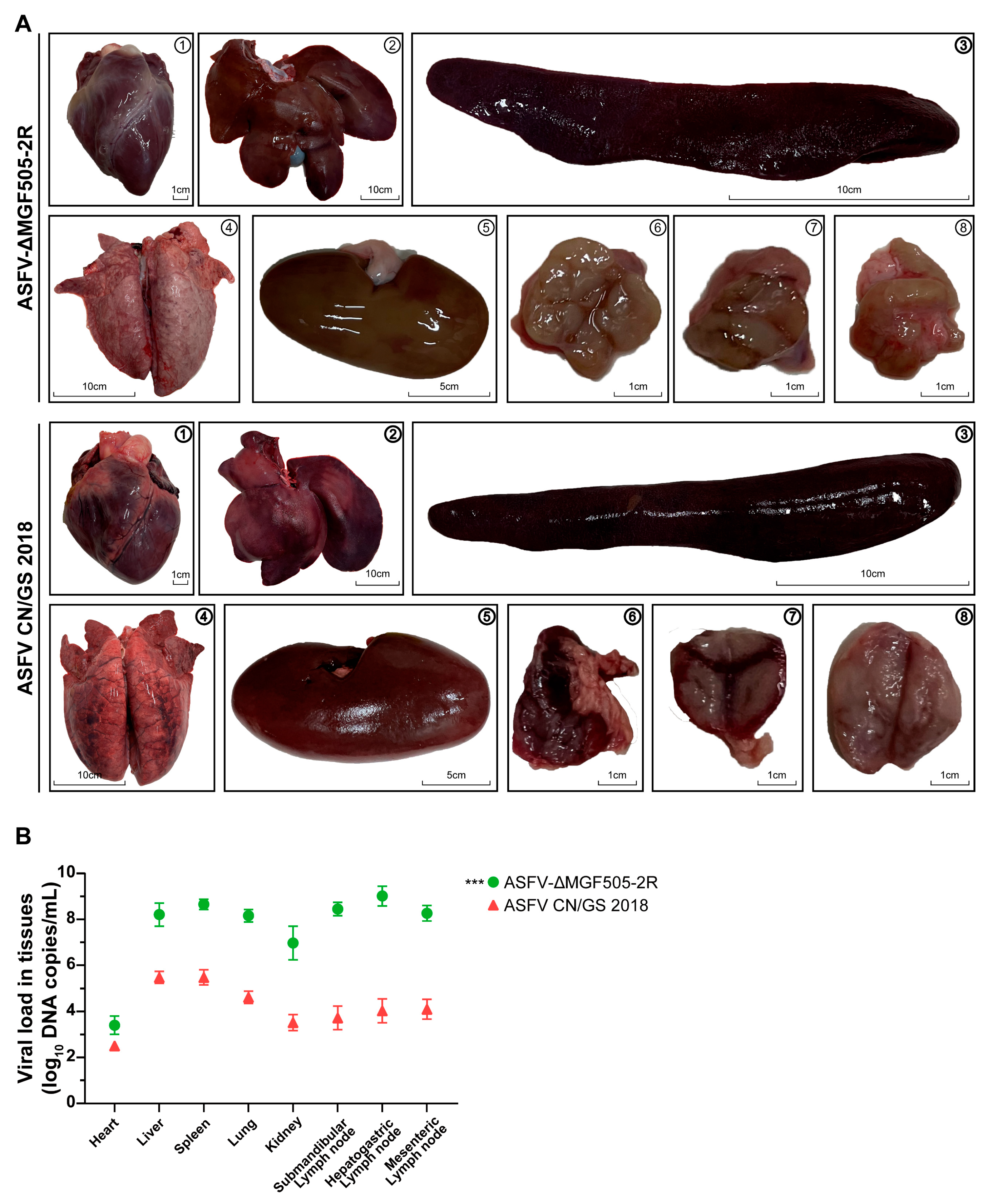 - Fan, W.; Cao, Y.; Jiao, P.; Yu, P.; Zhang, H.; Chen, T.; Zhou, X.; Qi, Y.; Sun, L.; Liu, D.; et al. Synergistic effect of the responses of different tissues against African swine fever virus. Transbound. Emerg. Dis. 2022, 69, e204–e215. [Google Scholar] [CrossRef]