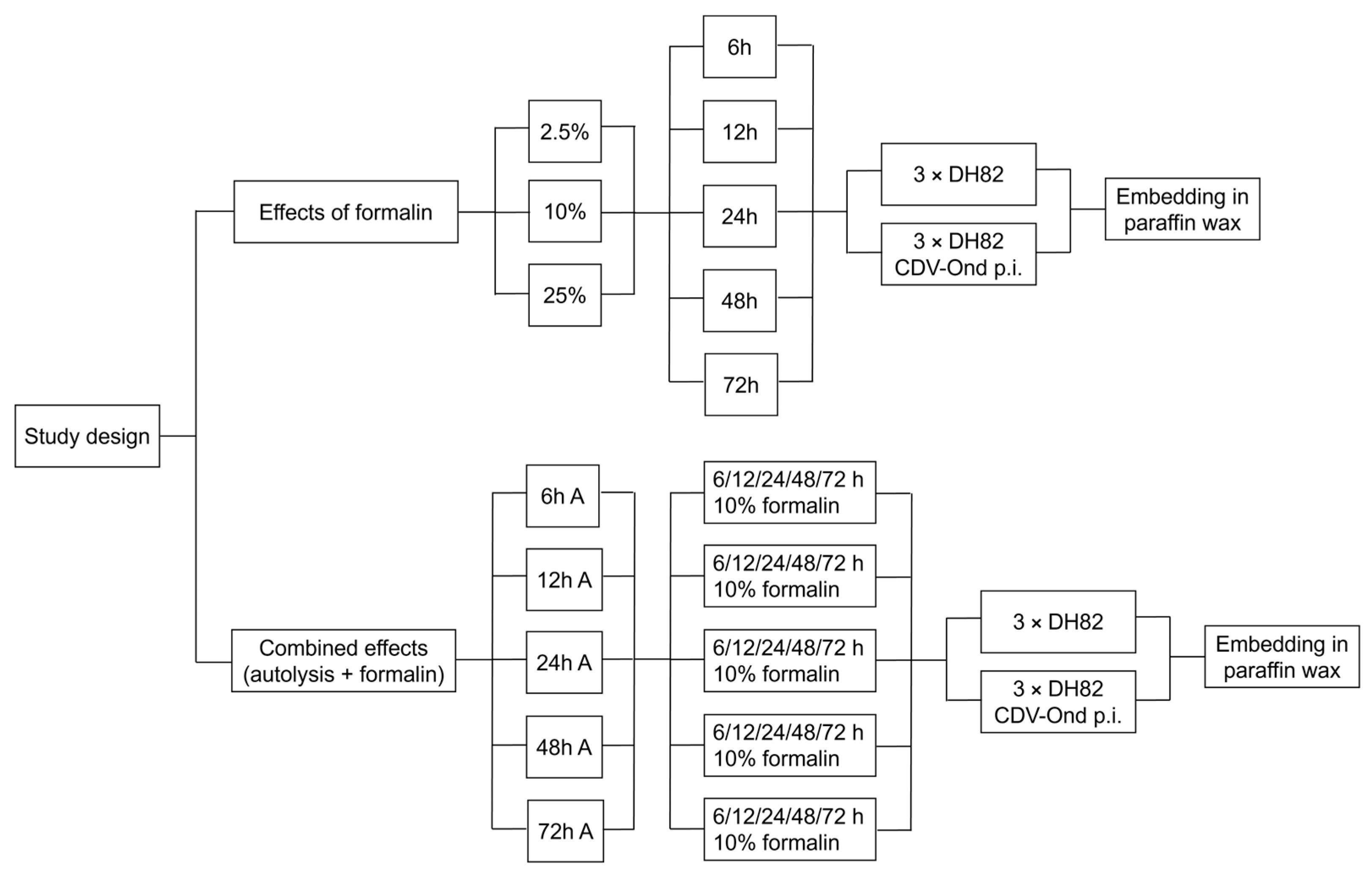 Gerhards H, Rohn K, Puff C, Baumgärtner W. An In Vitro Approach to Evaluate the Impact of Autolysis and Formalin Fixation on the Detection of Canine Distemper Virus and Innate Immune Response Antigens. Viruses. 2025; 17(12):1575. https://doi.org/10.3390/v17121575