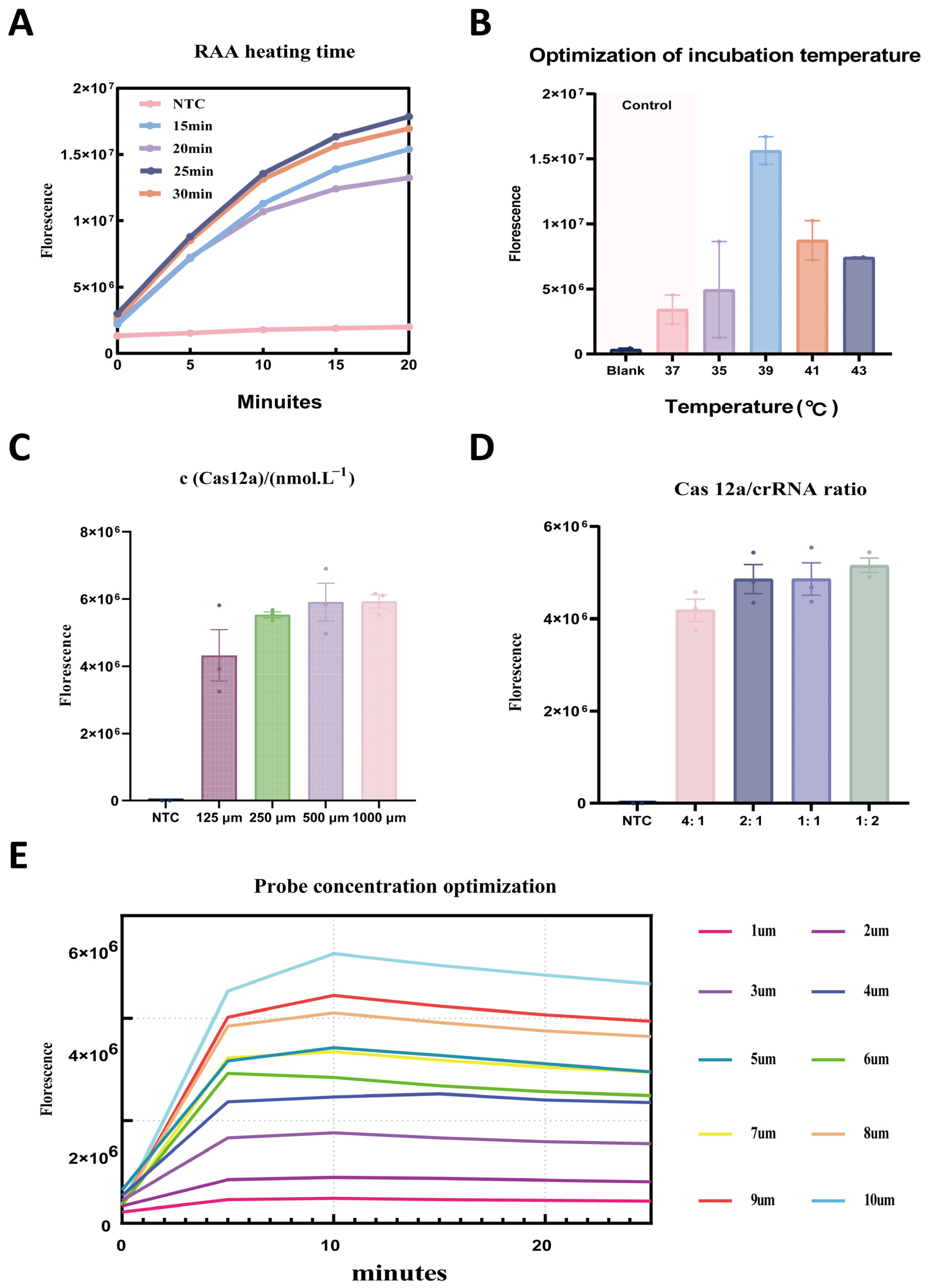2.5. Effects of Amplification Time, Temperature, Probe Concentration, and Other Reaction Conditions