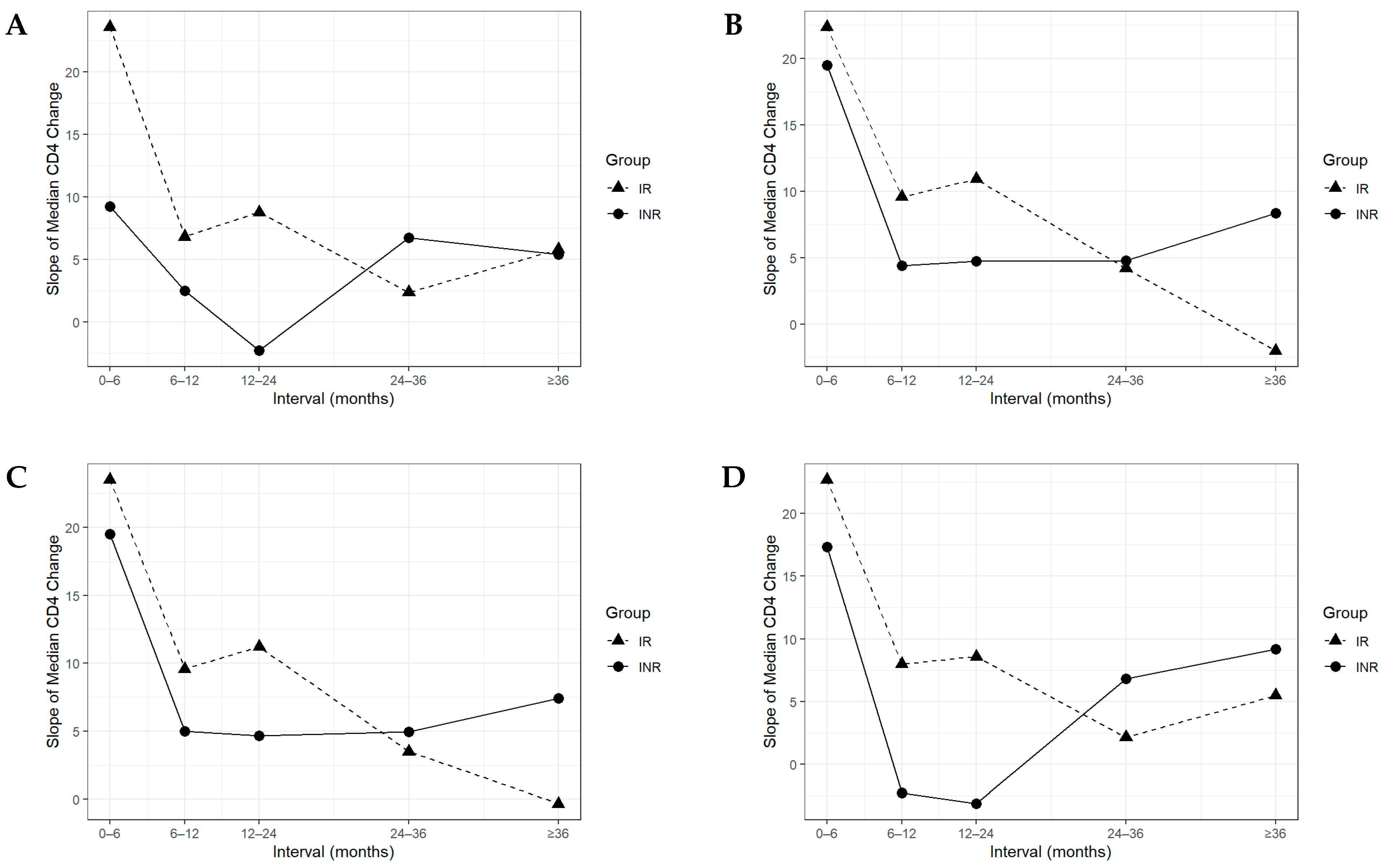 3.3. Longitudinal CD4+ Recovery Patterns in Immunological Responders and Non-Responders