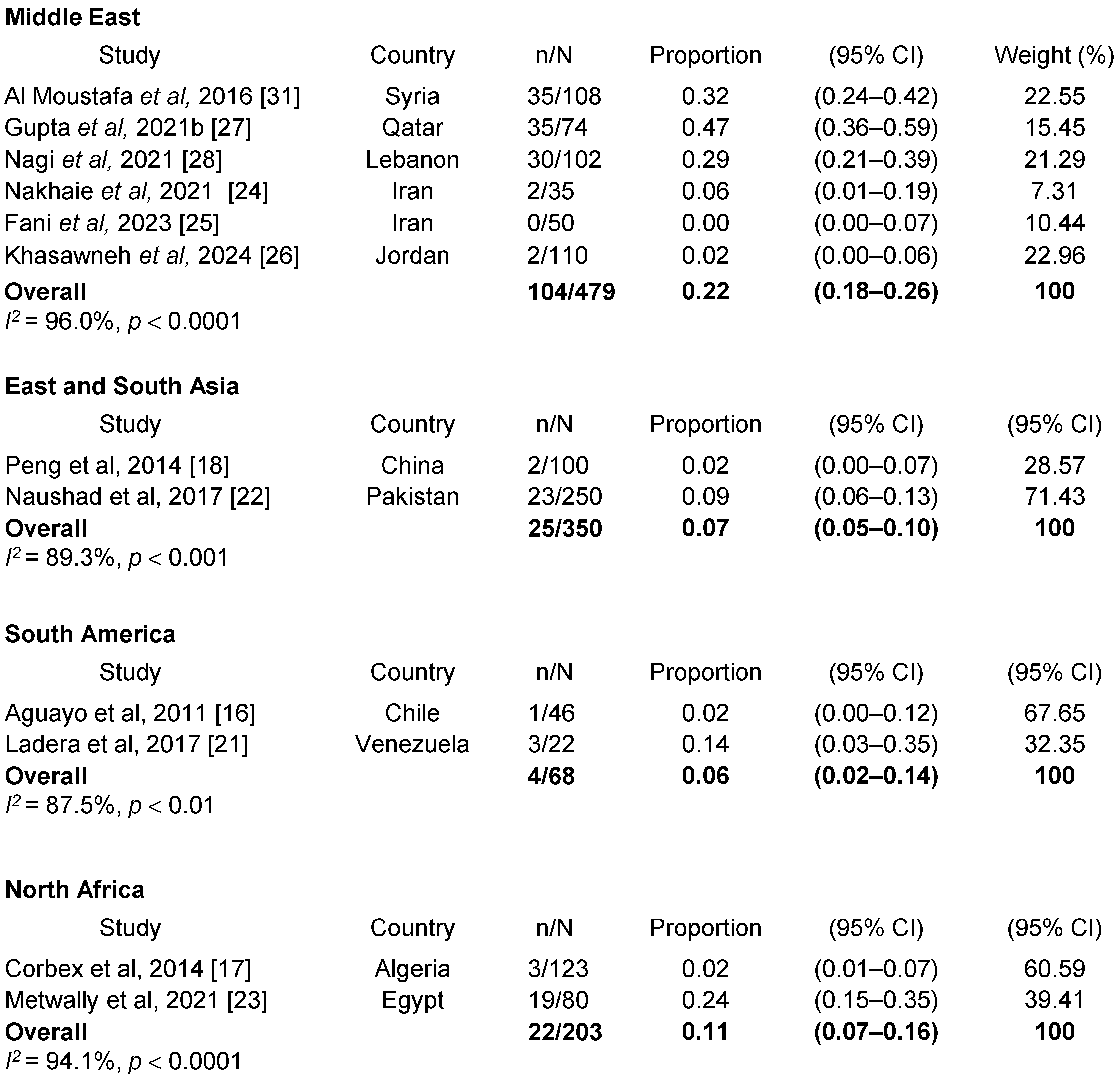 APA StyleKaren, A. A., Elkhalaf, A. S., Tluli, O., Sorour, O., Fakhrou, A., Malki, M. I., & Nagi, K. (2025). Global Prevalence and Cancer Risk of Epstein–Barr Virus and Human Papillomavirus Coinfection in Breast Cancer: A Systematic Review and Meta-Analysis. Viruses, 17(12), 1592. https://doi.org/10.3390/v17121592