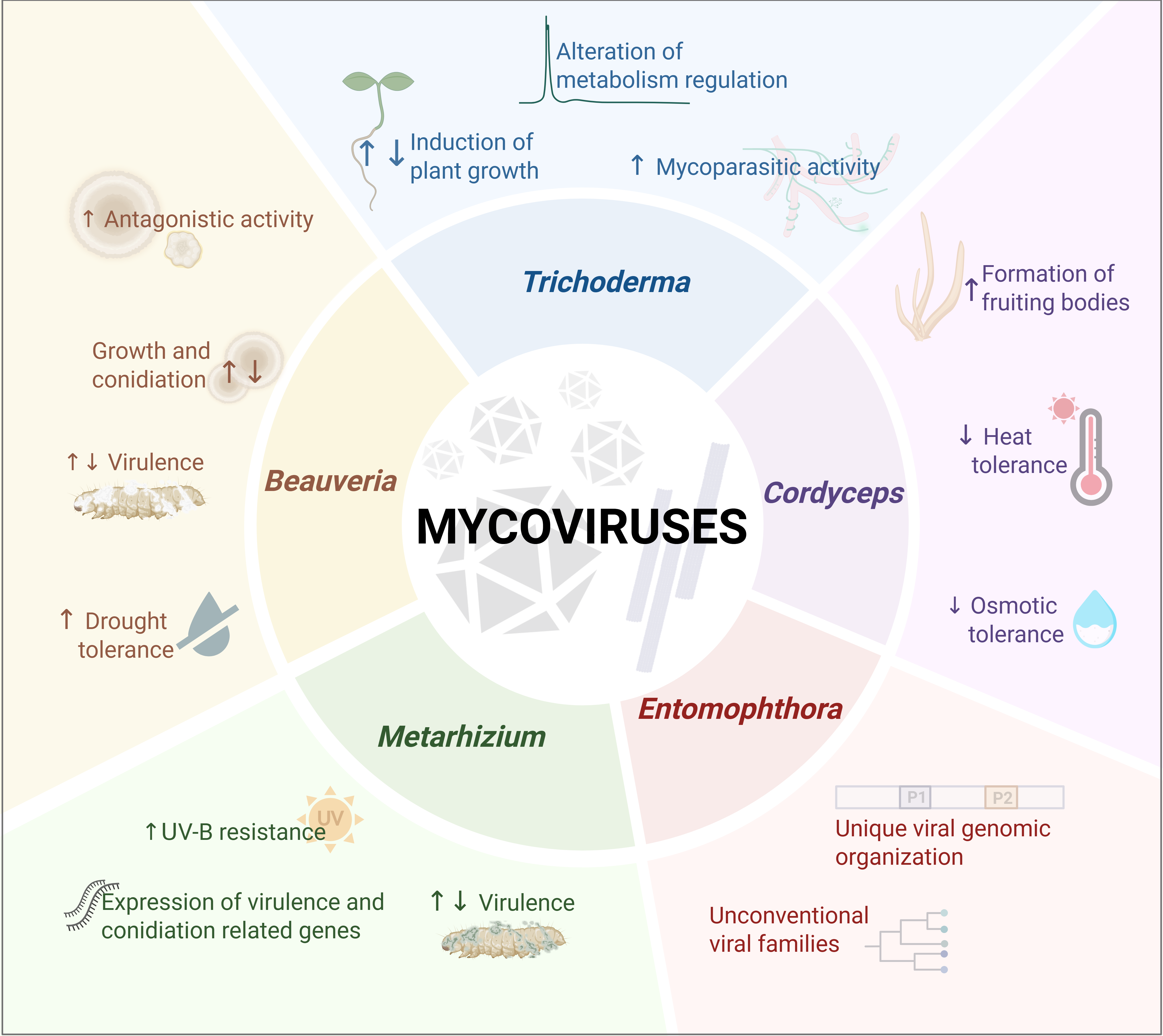 5.2. Environmental Implications on Mycoviruses Transmission