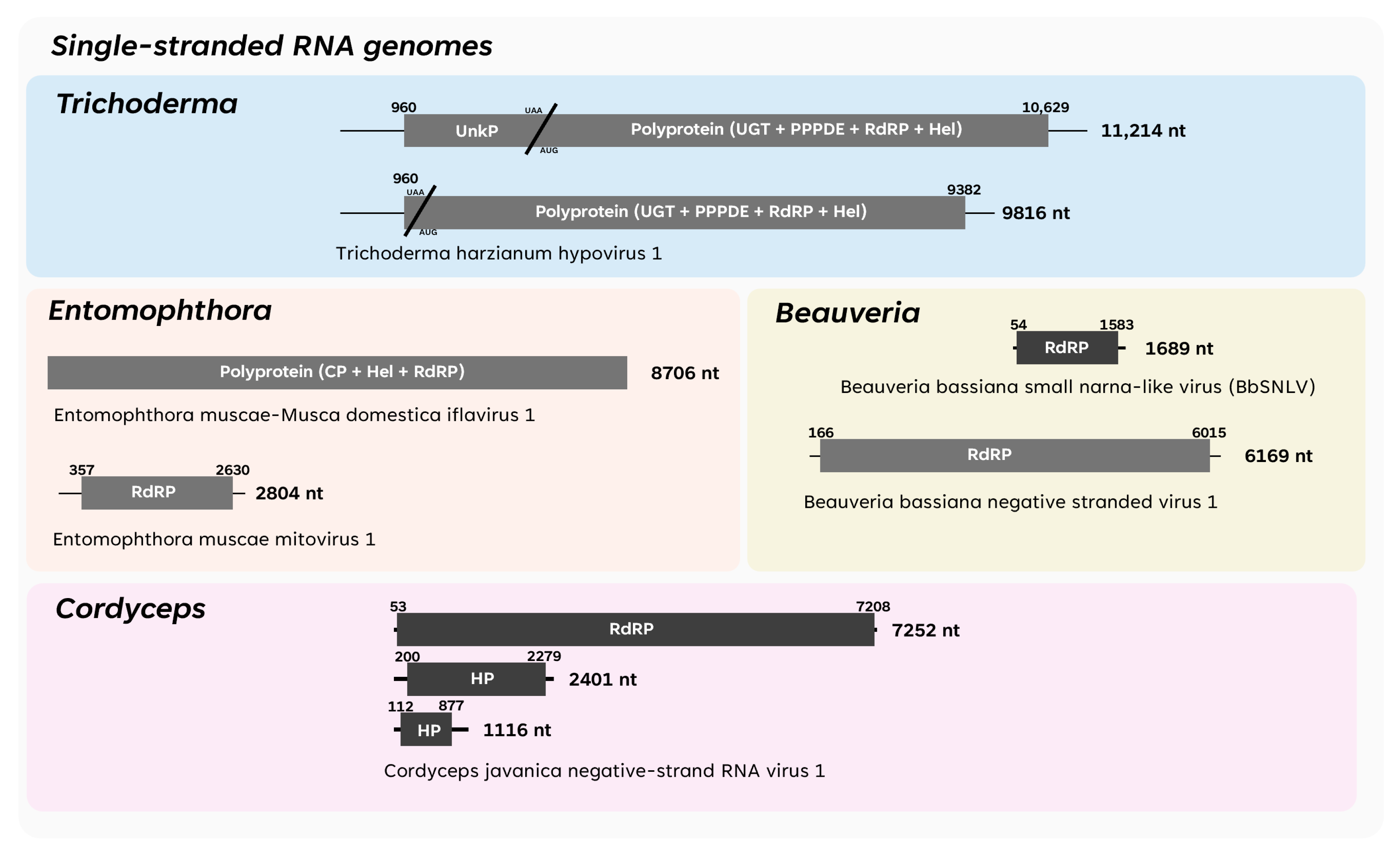 - Kotta-Loizou, I.; Coutts, R.H.A. ICTV Virus Taxonomy Profile: Polymycoviridae 2022. J. Gen. Virol. 2022, 103, 001747. [Google Scholar] [CrossRef]
