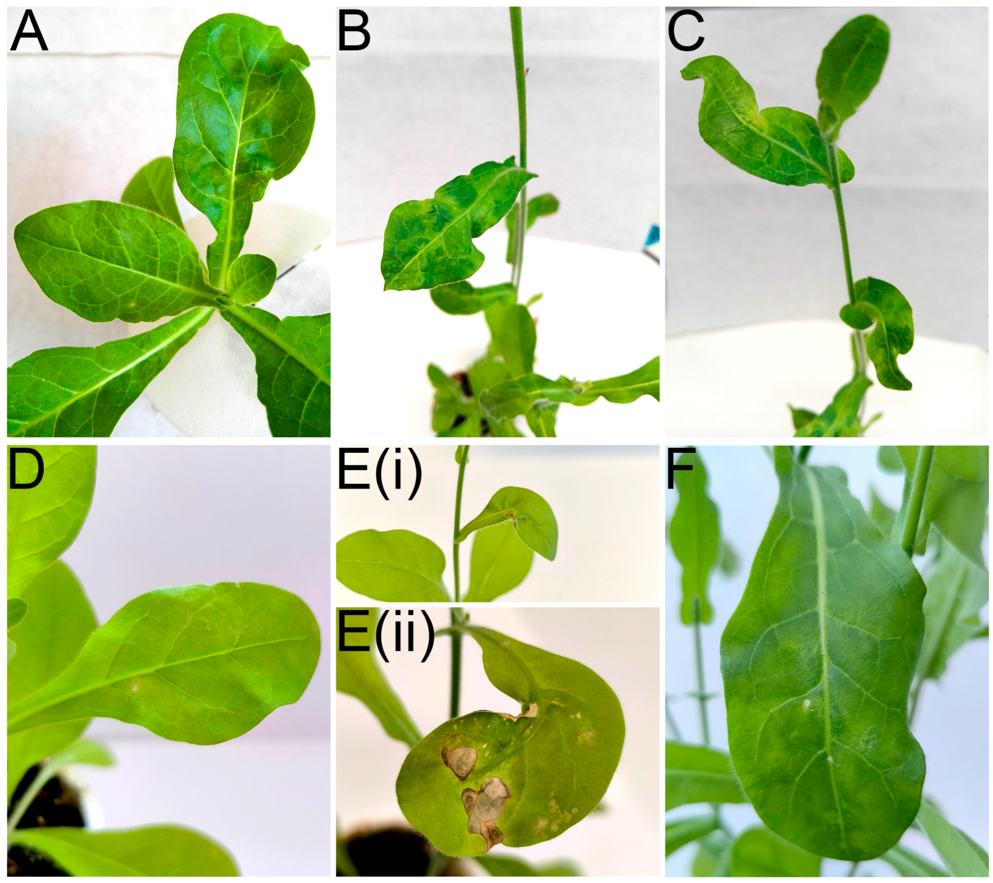 3.6. Raspberry Leaf Blotch Virus Experimental Transmission to Nicotiana occidentalis 37B