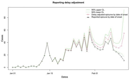 - Bastos, L.S.; Economou, T.; Gomes, M.F.C.; Villela, D.A.M.; Coelho, F.C.; Cruz, O.G.; Stoner, O.; Bailey, T.; Codeço, C.T. A modelling approach for correcting reporting delays in disease surveillance data. Stat. Med. 2019, 38, 4363–4377. [Google Scholar] [CrossRef]