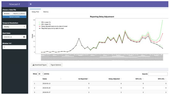 Often, those training in public health or policymakers lack the programming expertise to quickly implement tools that can provide critical information for forecasting efforts, such as reporting delay-adjusted curves. Therefore, we provide an R-Shiny App interface to facilitate the obtainment of reporting delay adjustment curves without requiring any previous programming or coding experience (Figure 19).