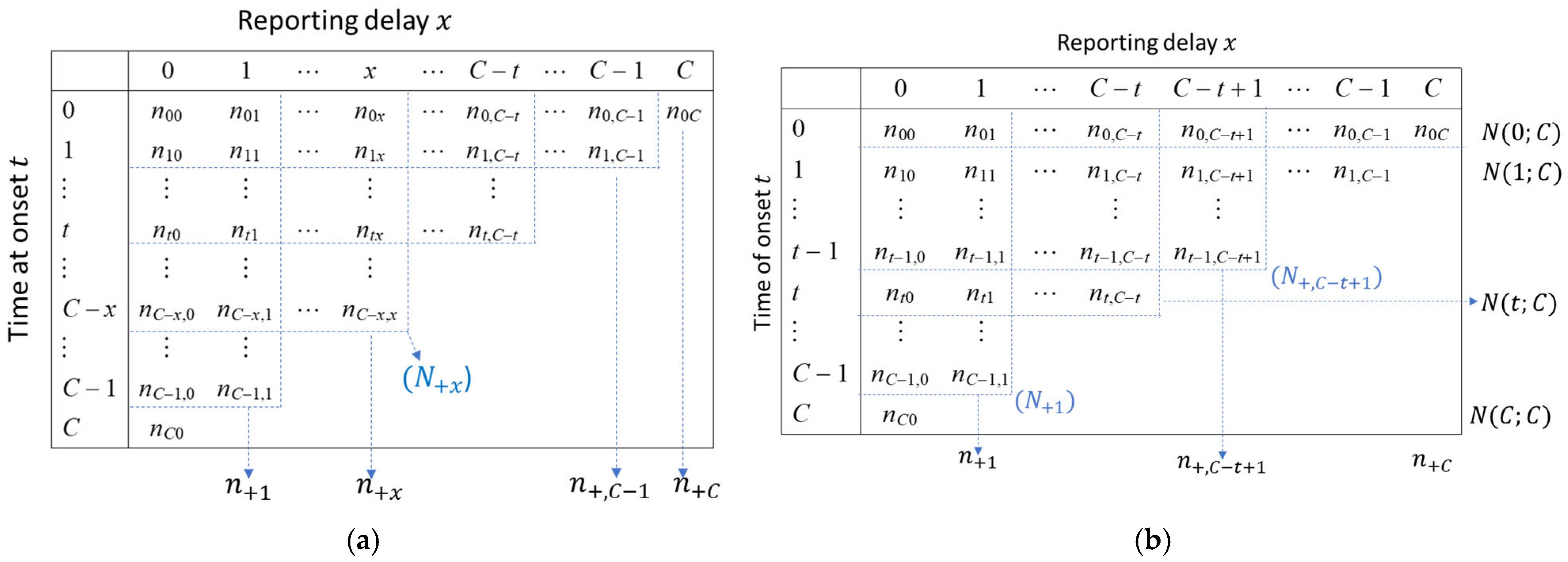 - Brookmeyer, R.; Liao, J.G. The analysis of delays in disease reporting: Methods and results for the acquired immunodeficiency syndrome. Am. J. Epidemiol. 1990, 132, 355–365. [Google Scholar] [CrossRef] [PubMed]