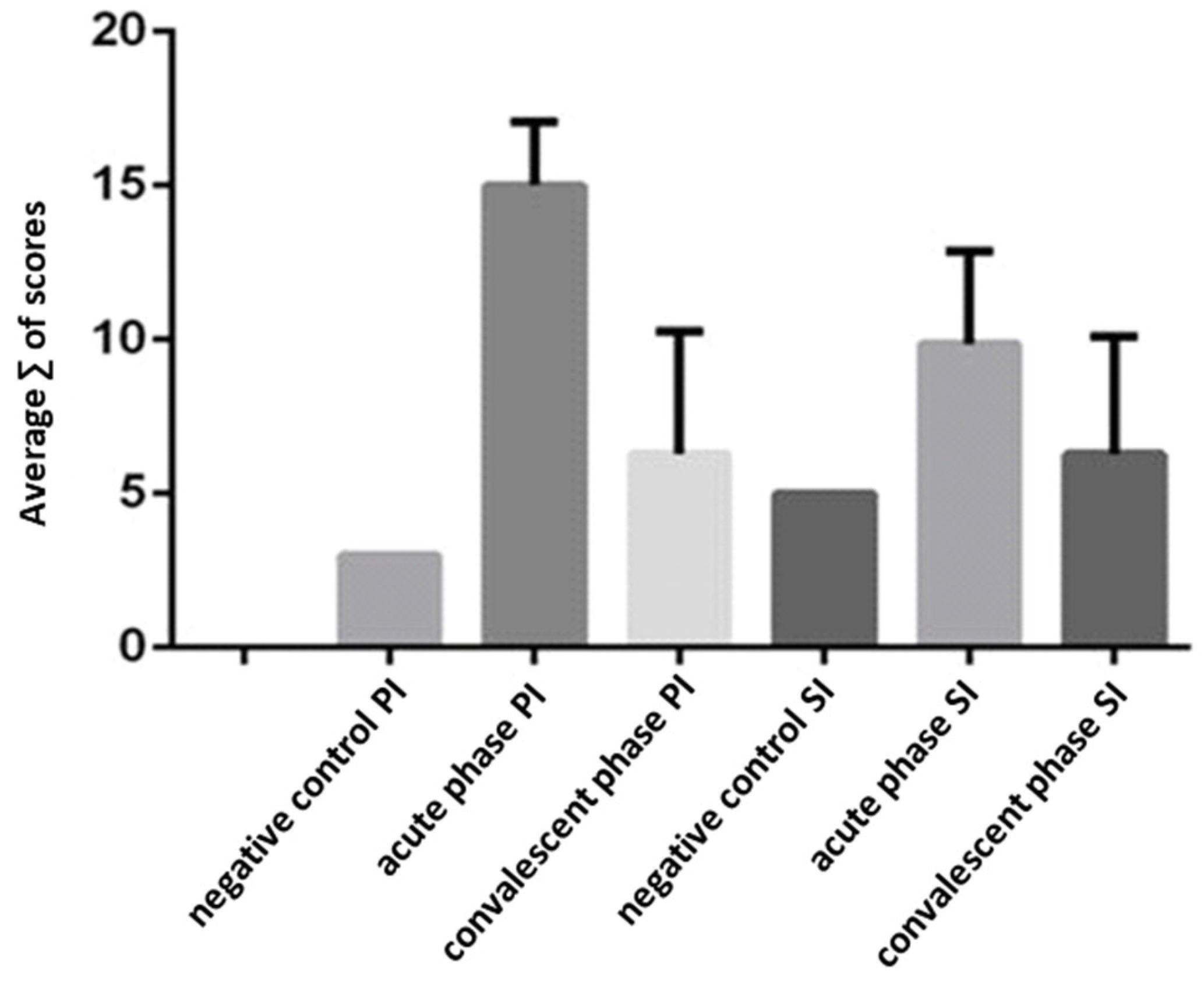 3.3. Hepatitis Characterization in Primary (DENV-3) and Secondary (DENV-3/2) Infections